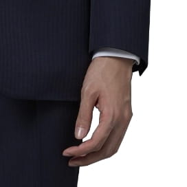 ジャケットボタン全てのボタンを留めずに、一番下のボタンは外す!