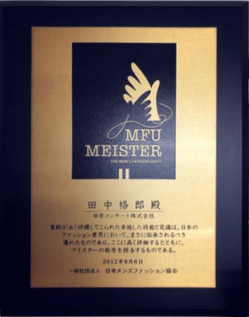 - 2012年日本メンズファッション協会(MFU)よりMFUマイスター<技術遺産>の称号を受賞。