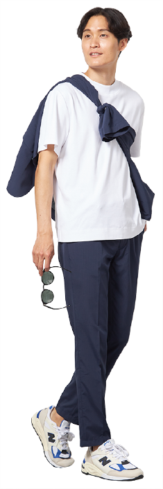 タイドアップからカジュアルまで使い回しやすい万能セットアップ。