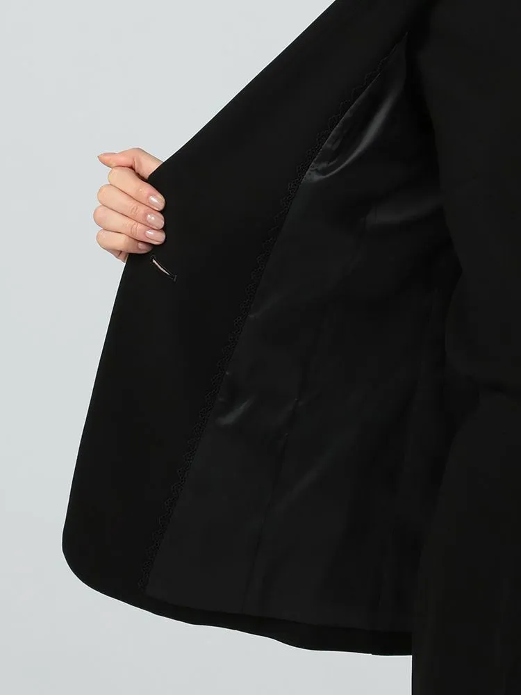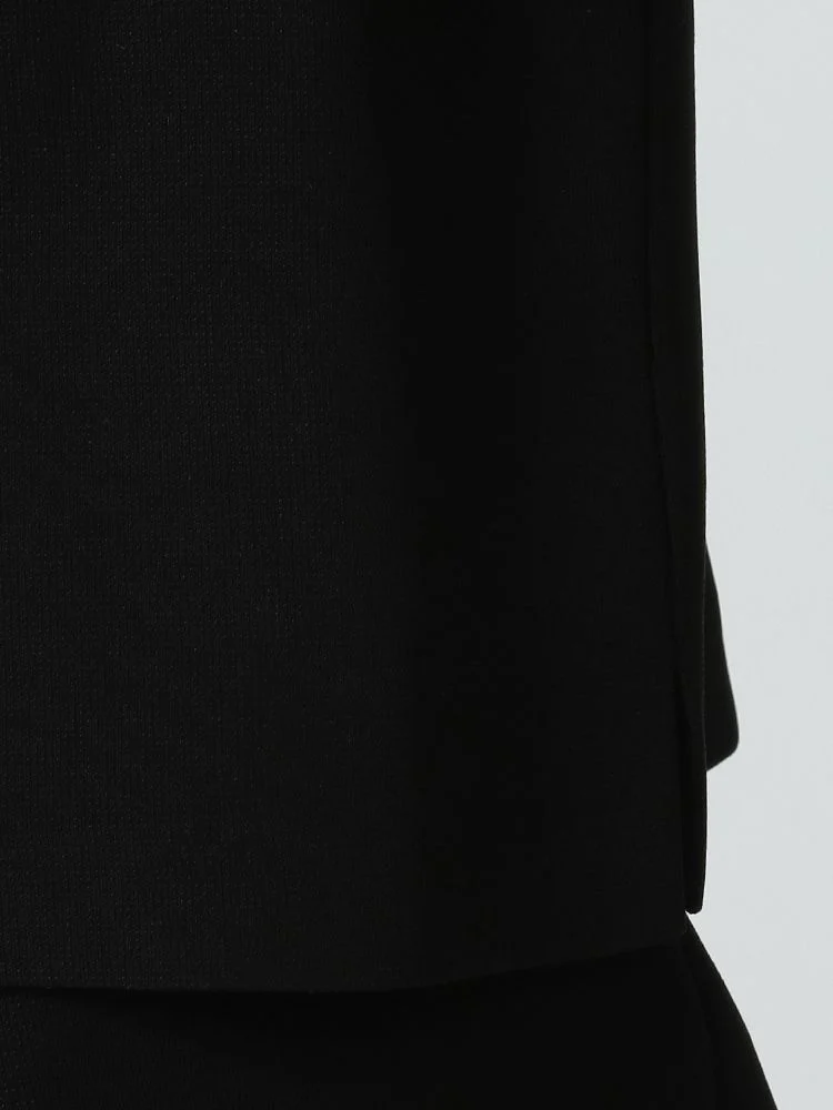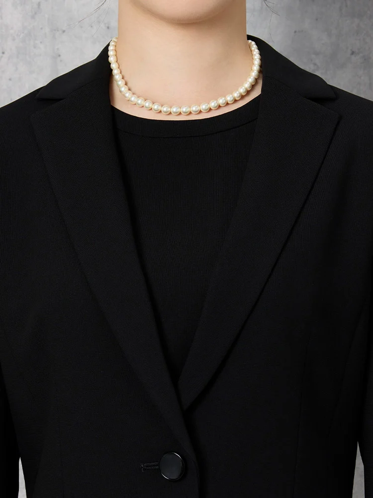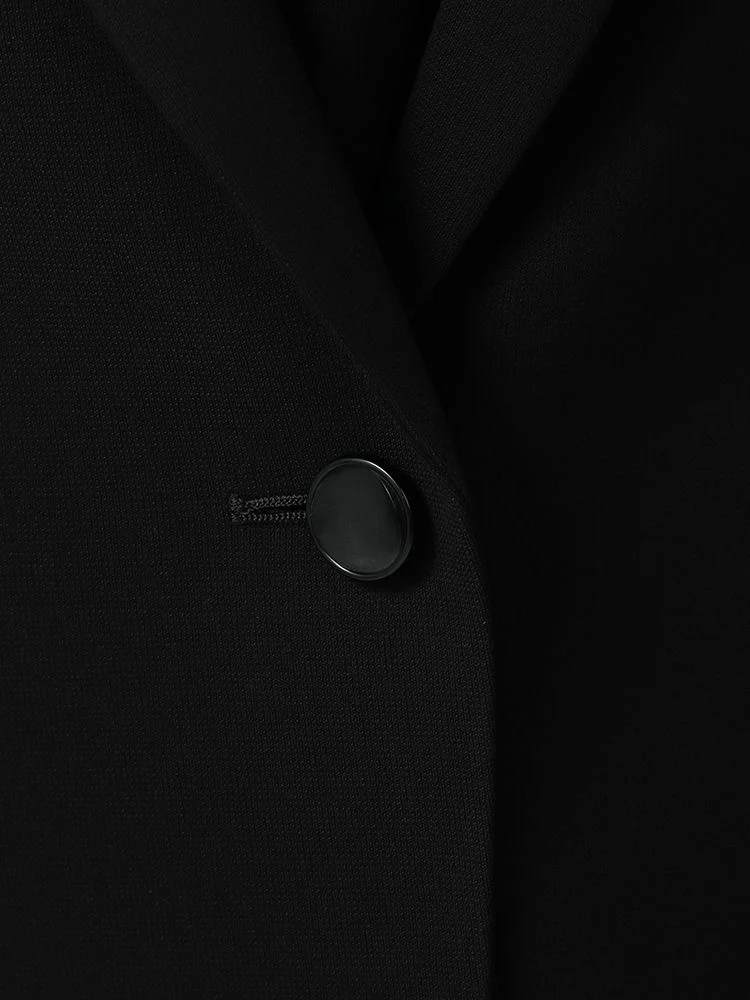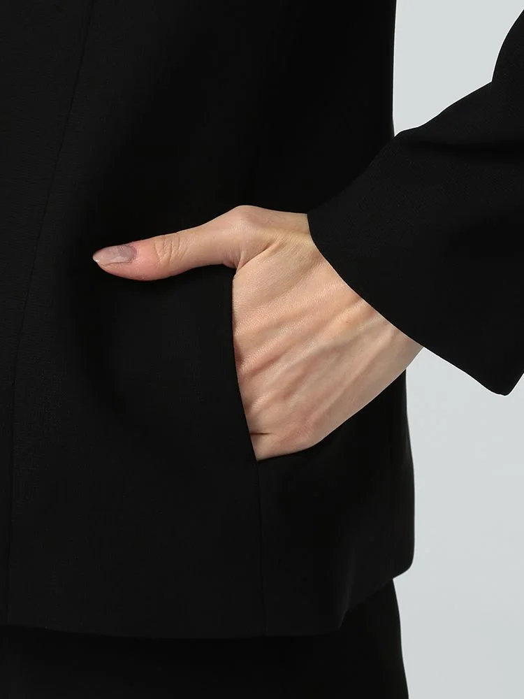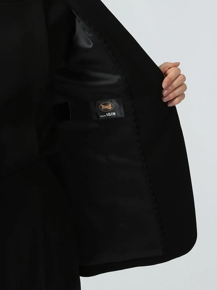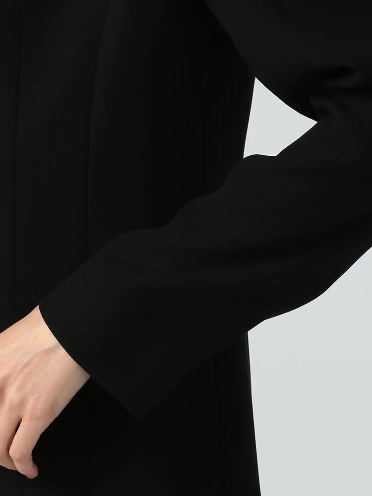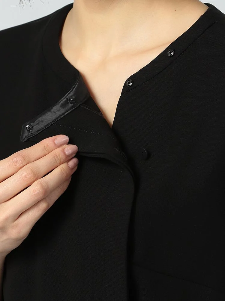 ノーカラー&フロントボタンが隠れたすっきりとした印象のデザインでシックなデザインが魅力。