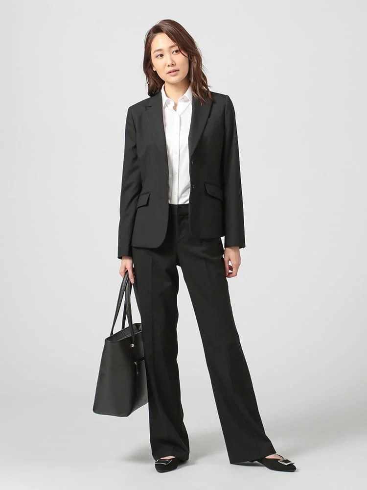 2つボタンのデザインで、クラシックなスタイルを演出。落ち着きと品のあるアイテムです。