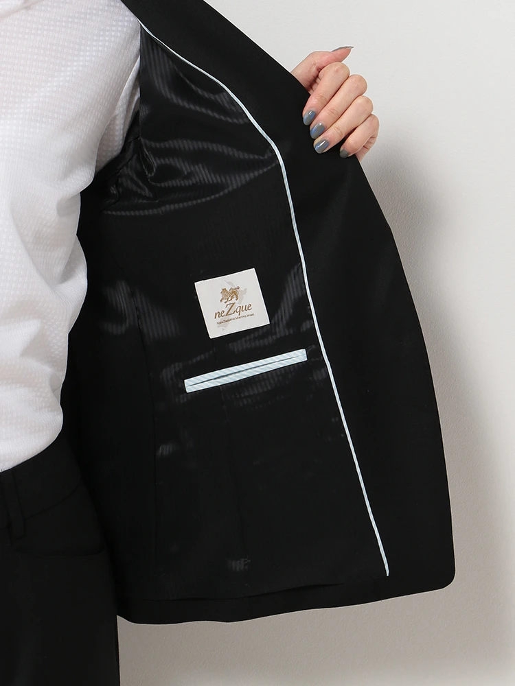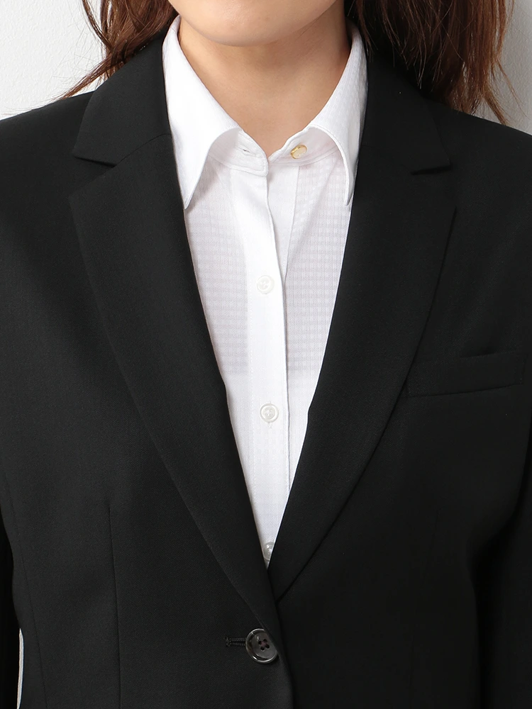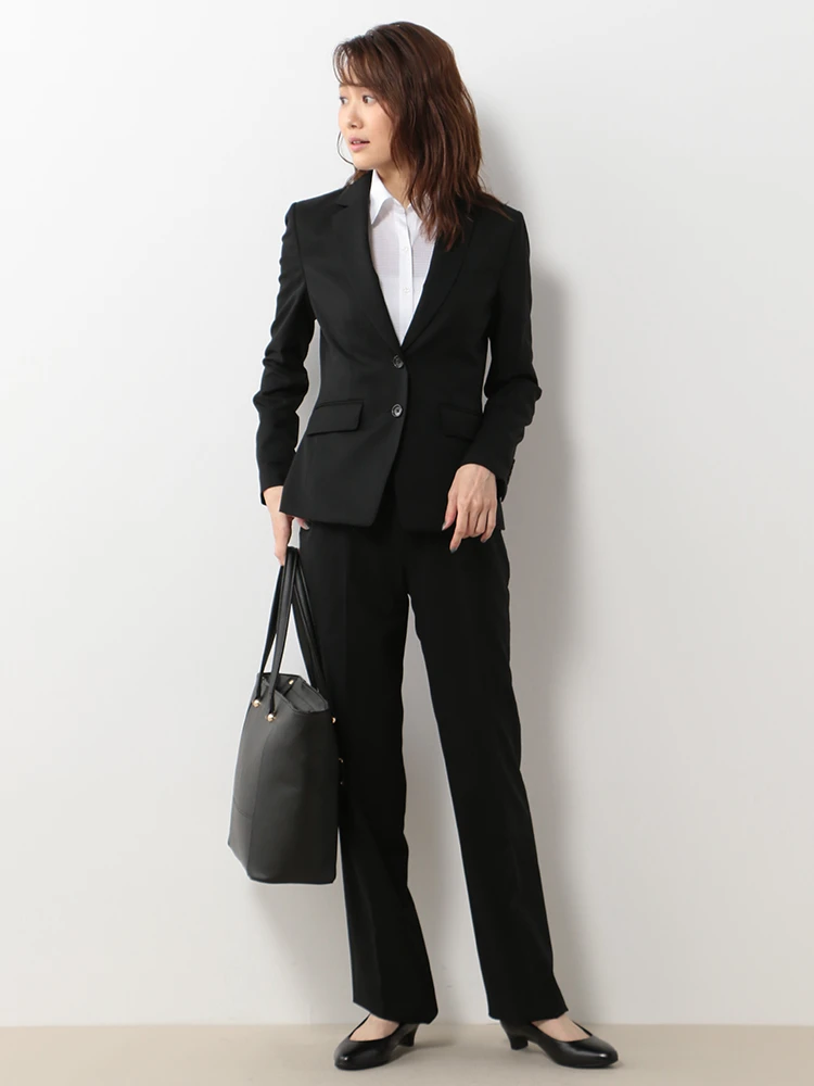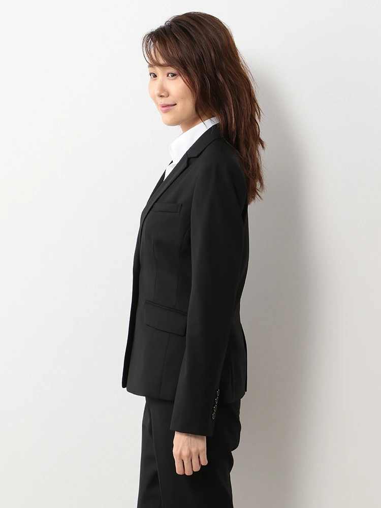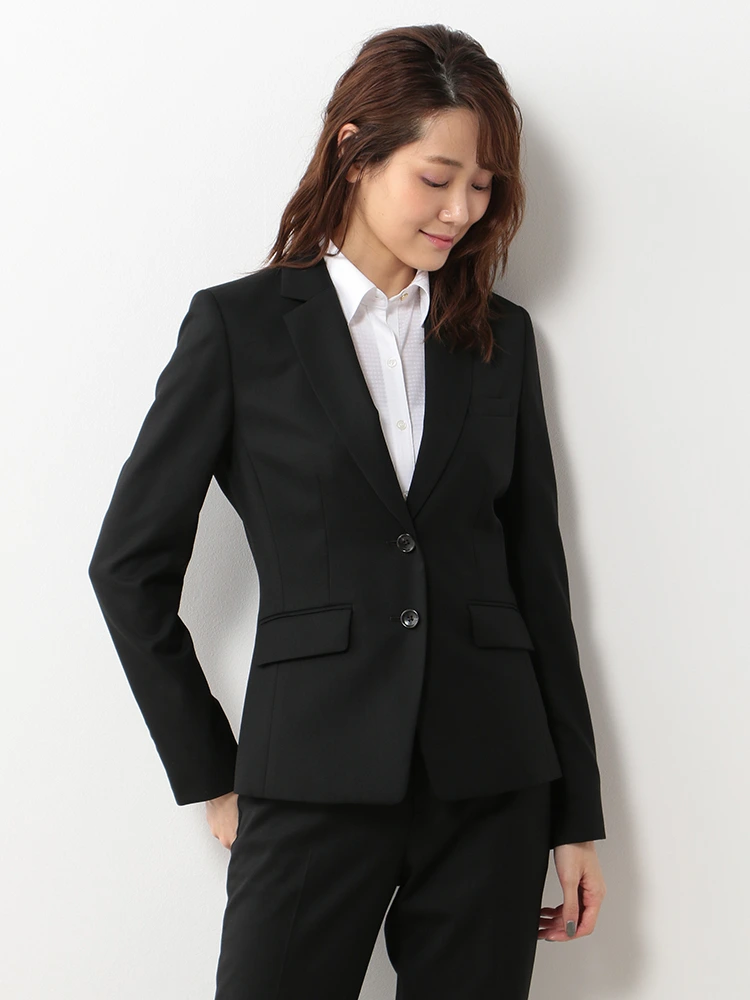 きちんと感のある2ボタンと定番のブラックカラーでリクルートスーツとしてもおすすめします。