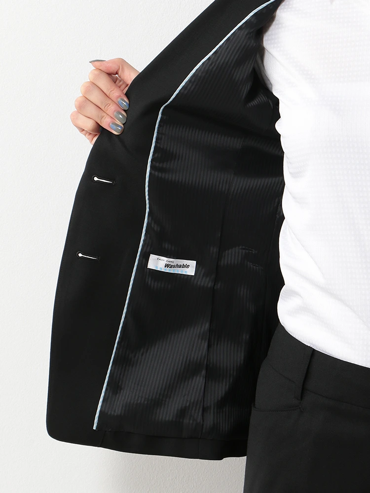 【ウォッシャブル】ジャケット 2つボタン ストレッチ ブラック 無地 通年【レディース】