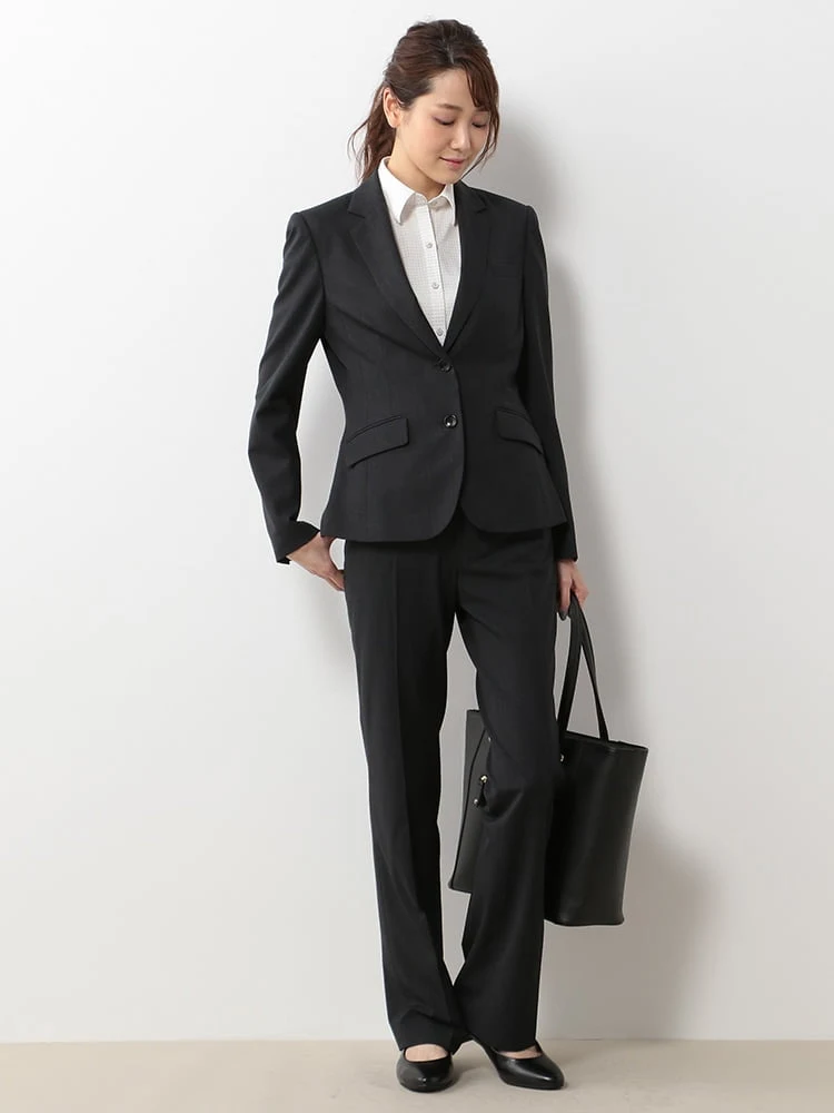 表地:ポリエステル48% ウール45% ポリウレタン7% 裏地:ポリエステル複合繊維36% ポリエステル64%
