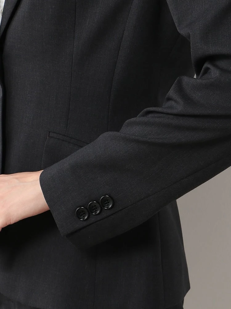 1つボタンのデザインで、シンプルかつスタイリッシュな印象を与えます。洗練されたシルエットが特徴です。