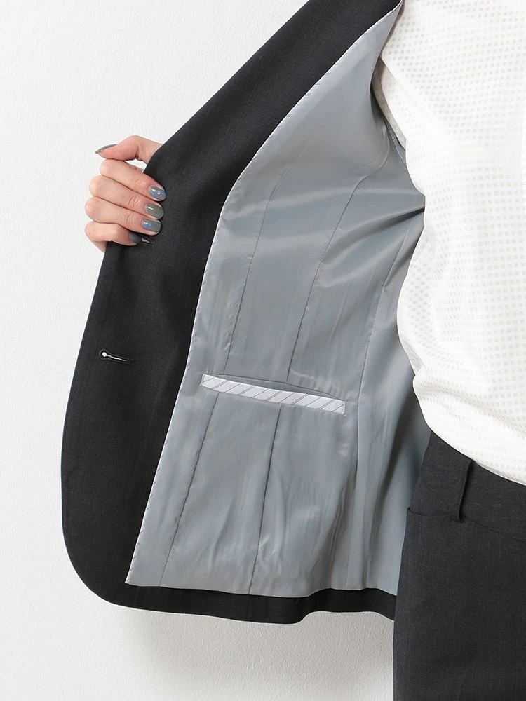 濃色のグレーは落ち着きがあり、着用シーンを選びません。