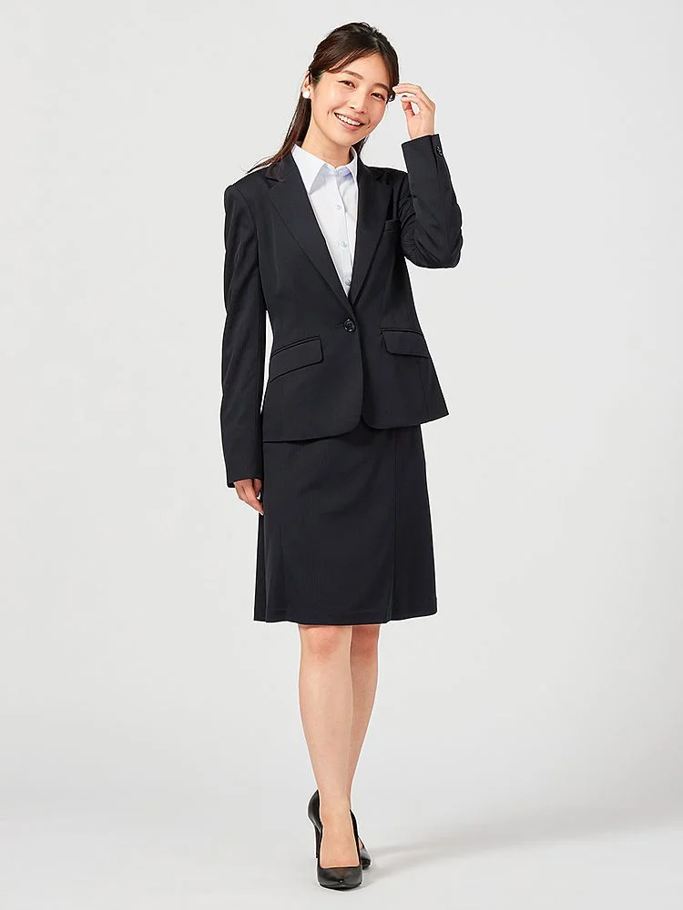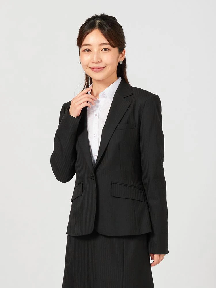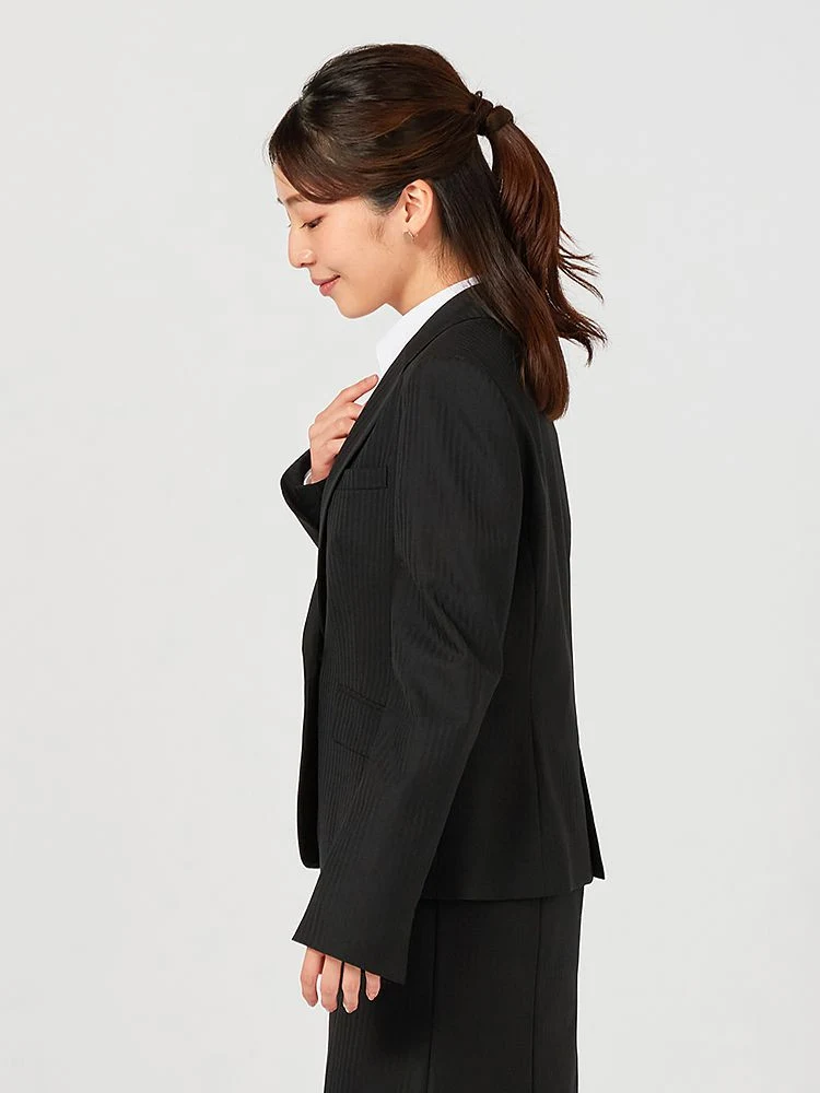 【ウォッシャブル】ジャケット ストレッチ S&M Knightsbridge ブラック シャドウストライプ 通年【レディース】