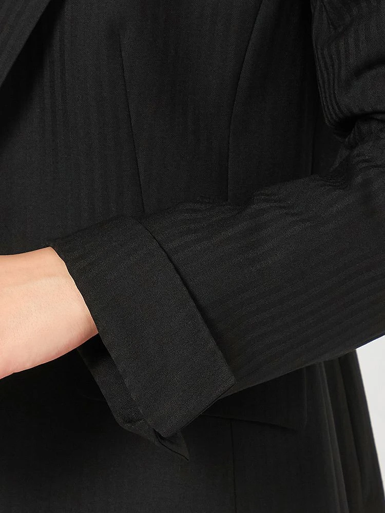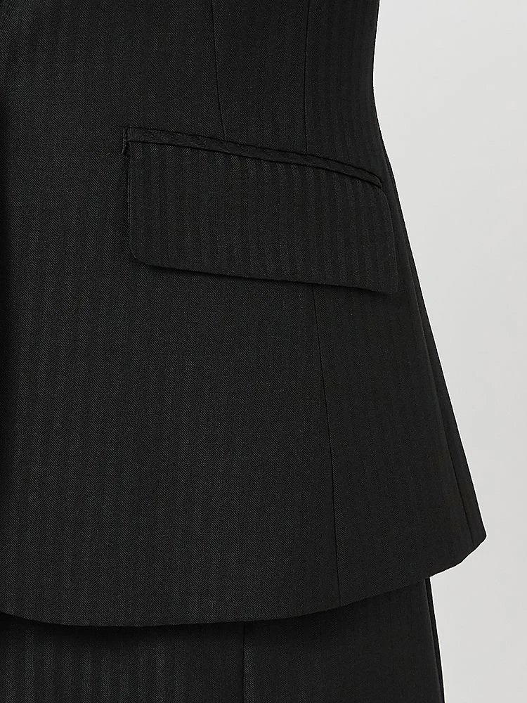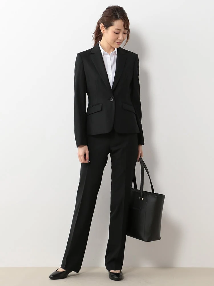 ウエストが自然にシェイプされたシングルボタンのすっきりシルエットで、スタイル良くお召しいただけます。