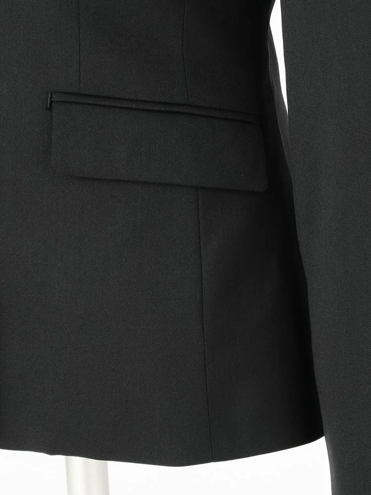 切り込みが1本のセンターベントデザインです。細身でスッキリとしたシルエットが特徴で、快適な着心地を提供します