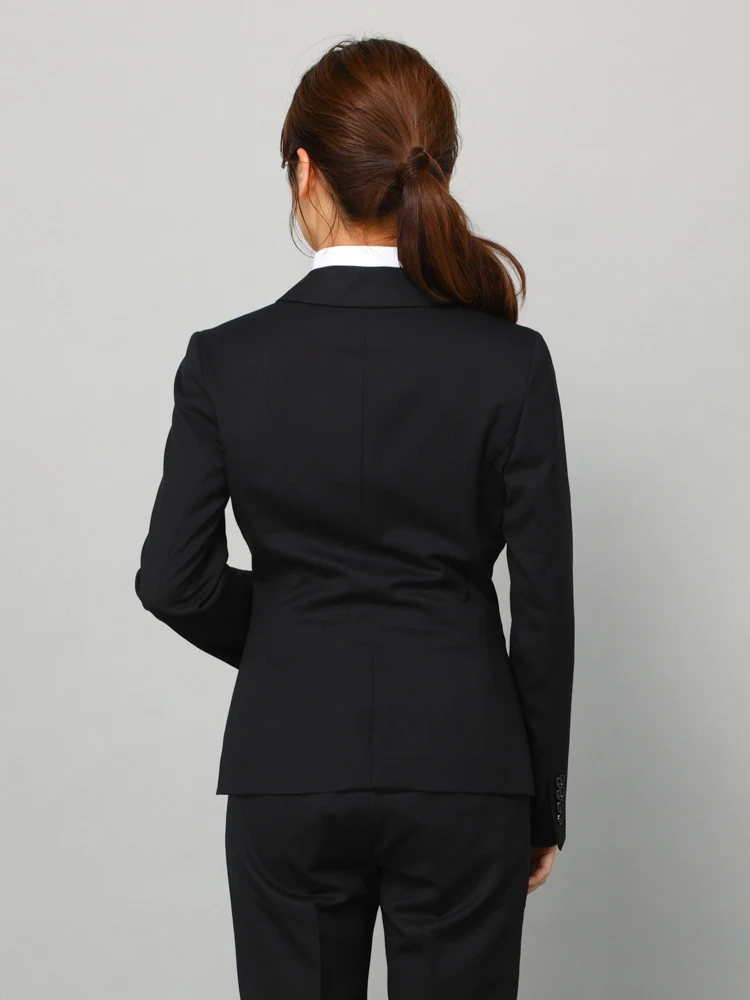 ウール本来の光沢、黒の深い柔らかな風合いなので女性の体に沿ったシルエットが表現できます。