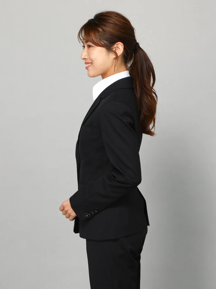 ジャケットは、はるやま独自の立体パターンによる4面体仕上げでメリハリのある美しいシルエットを実現。