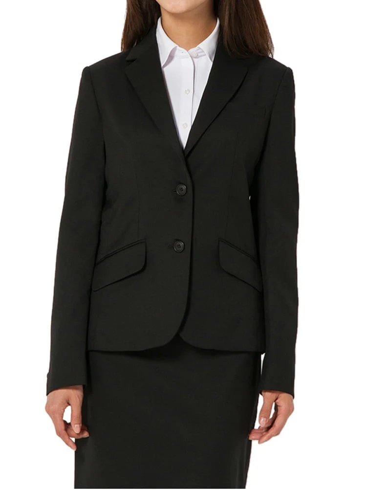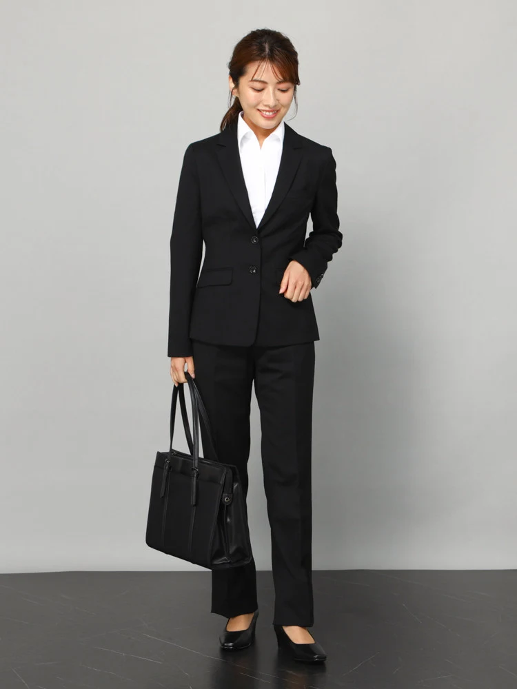 【ウォッシャブル】ジャケット2つボタンストレッチブラック無地通年【レディース】