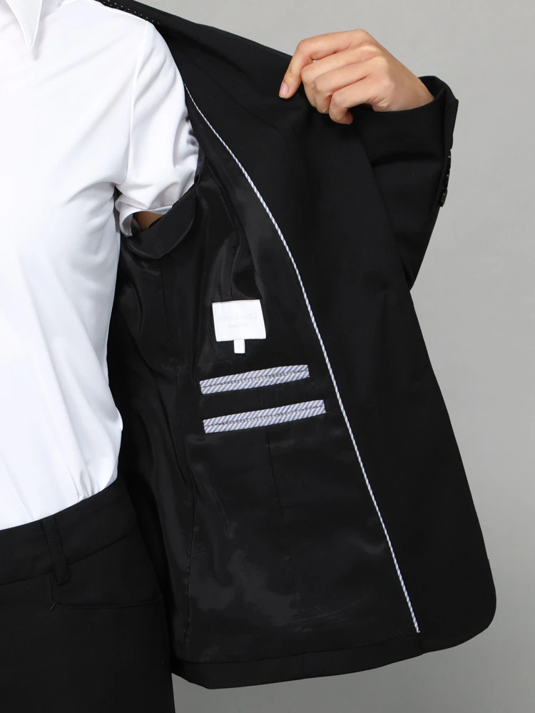 【ウォッシャブル】ジャケット 2つボタン 黒無地 ストレッチ STOVEL MASON WHITE 通年【レディース】