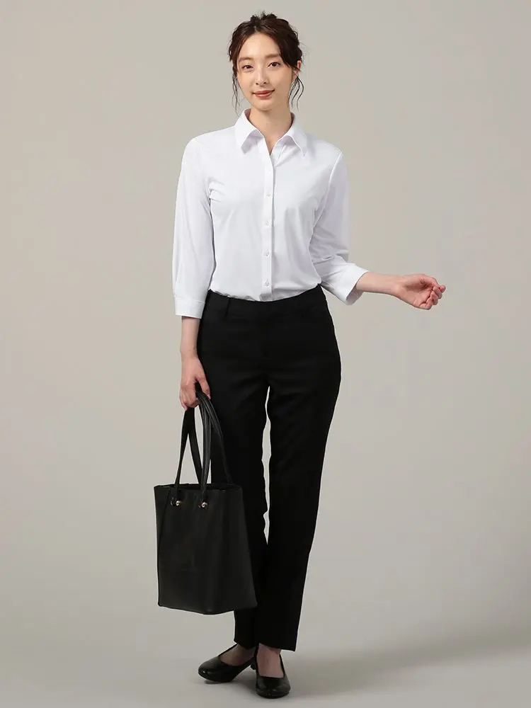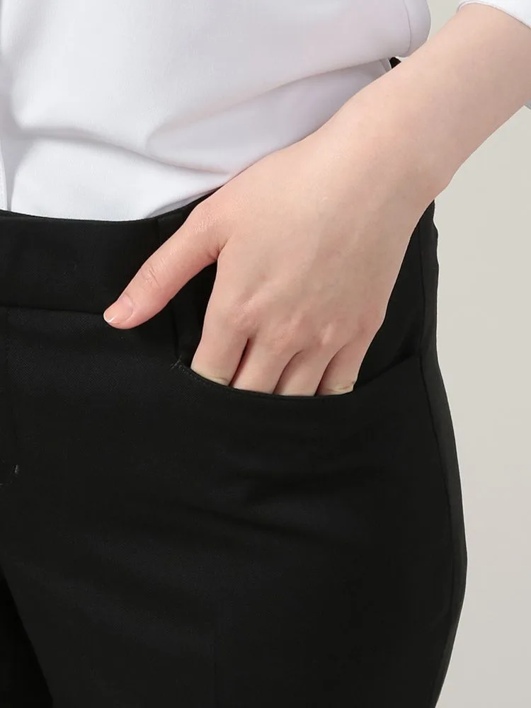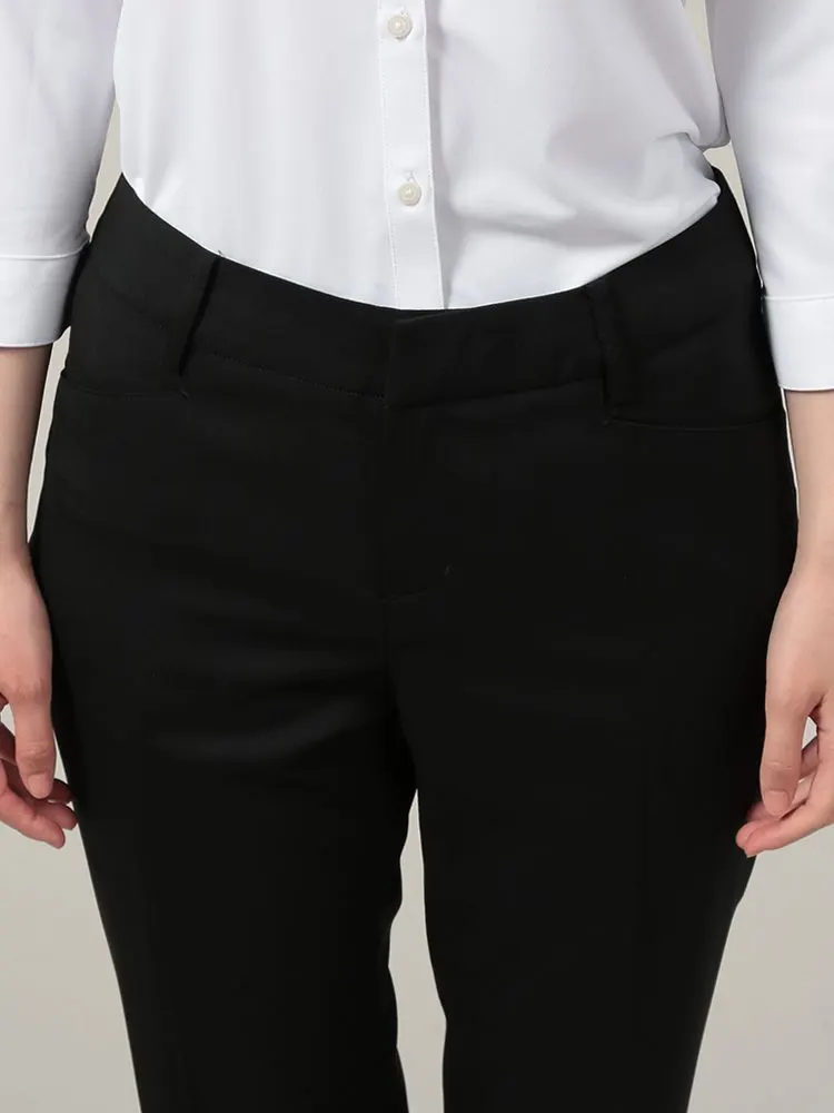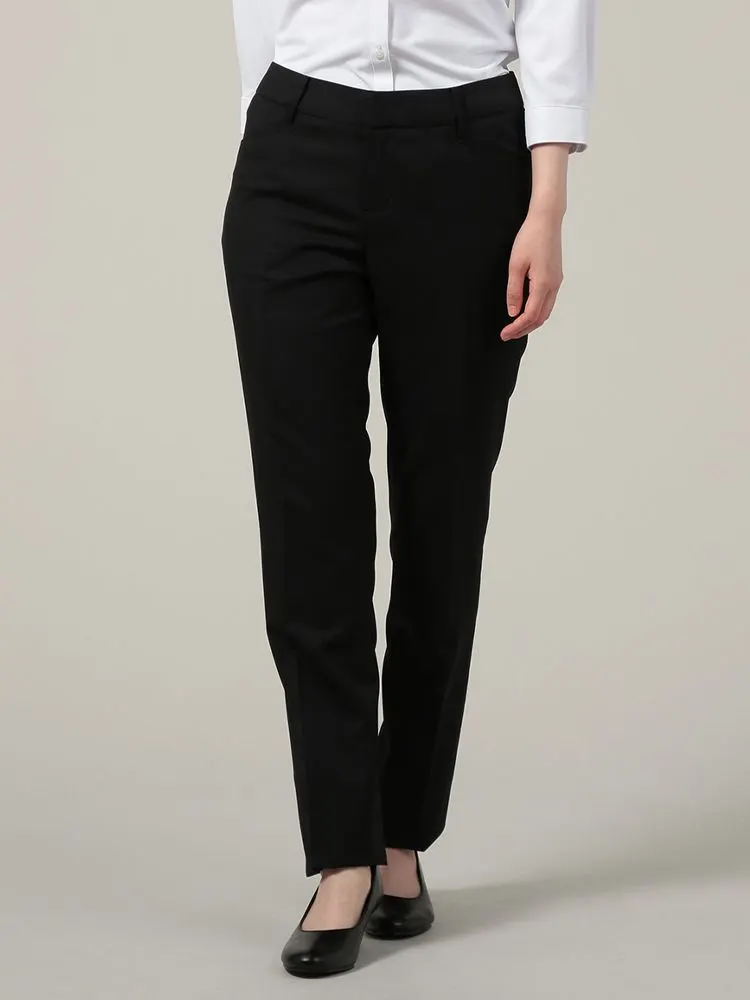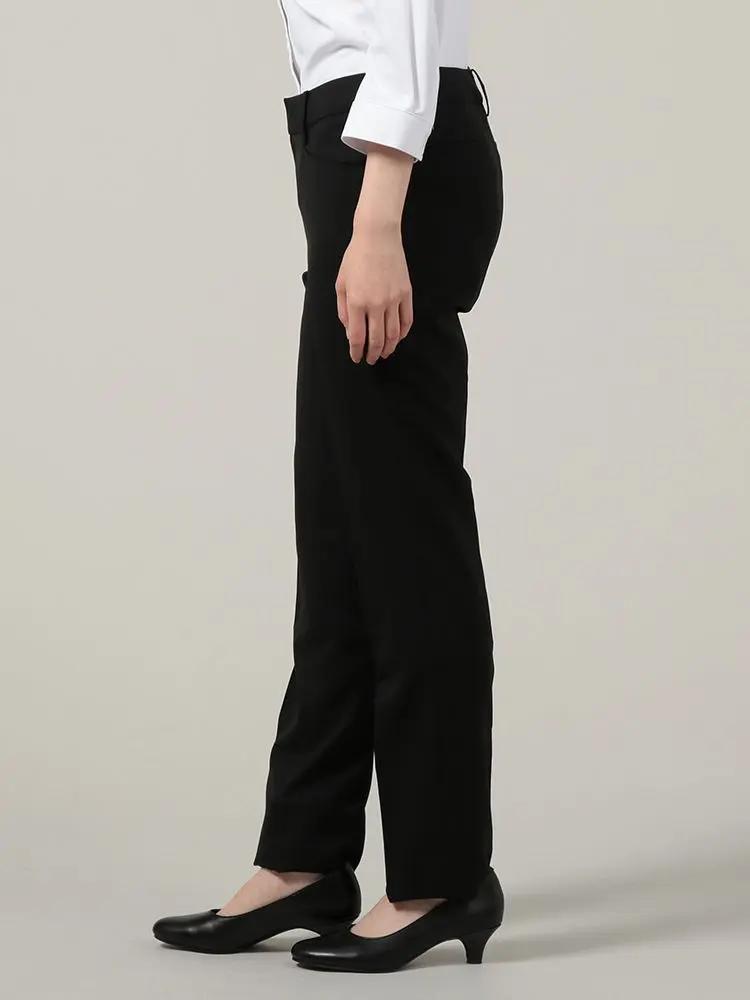 【ウォッシャブル】レディースストレートパンツ黒無地RENU生地使用SOFFICE通年【レディース】