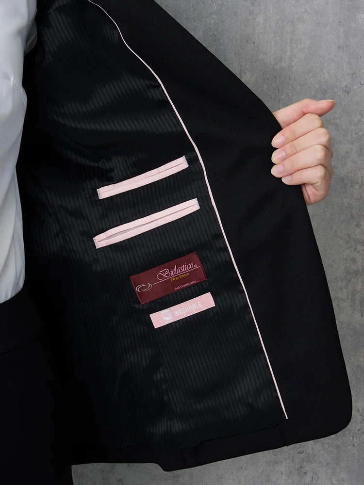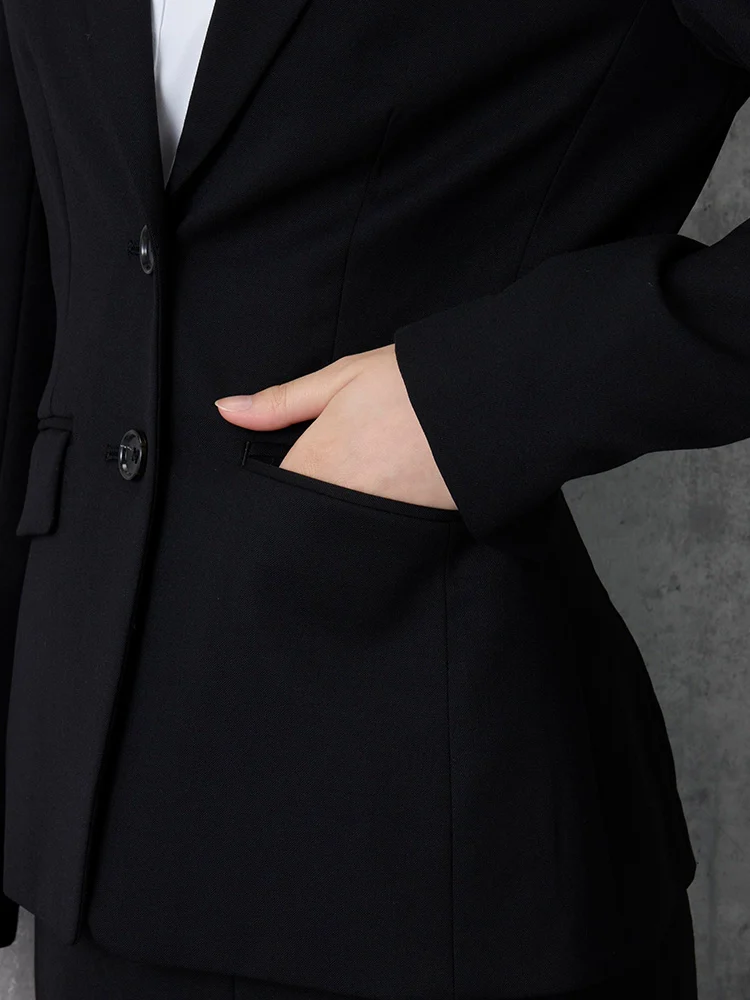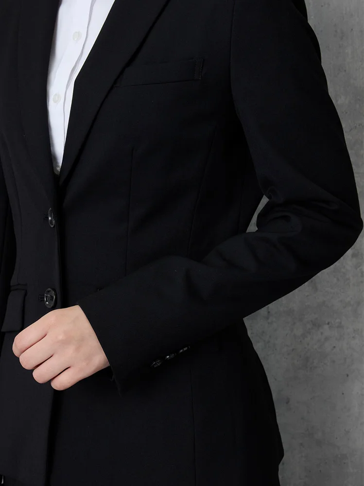 【ウォッシャブル】ジャケット2つボタンストレッチブラック無地通年【レディース】