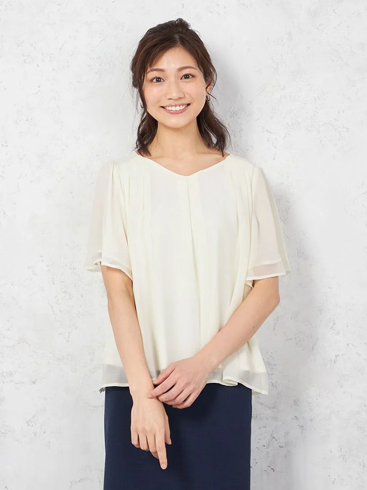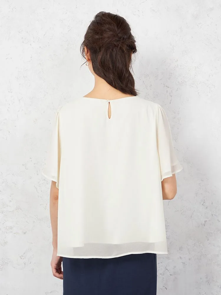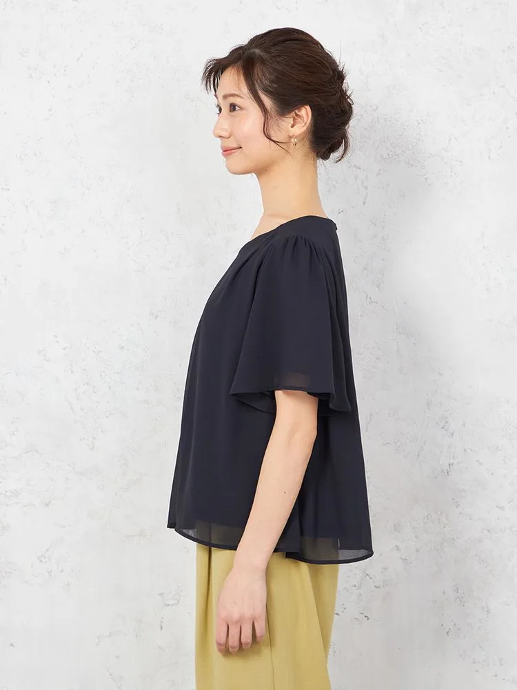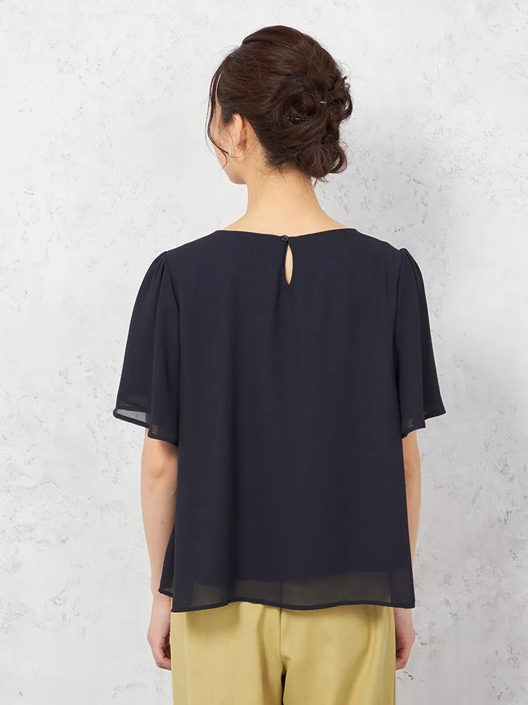 シアーなシフォン素材を使った、軽やかな着心地の半袖プルオーバーブラウスです。