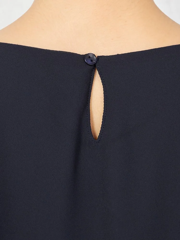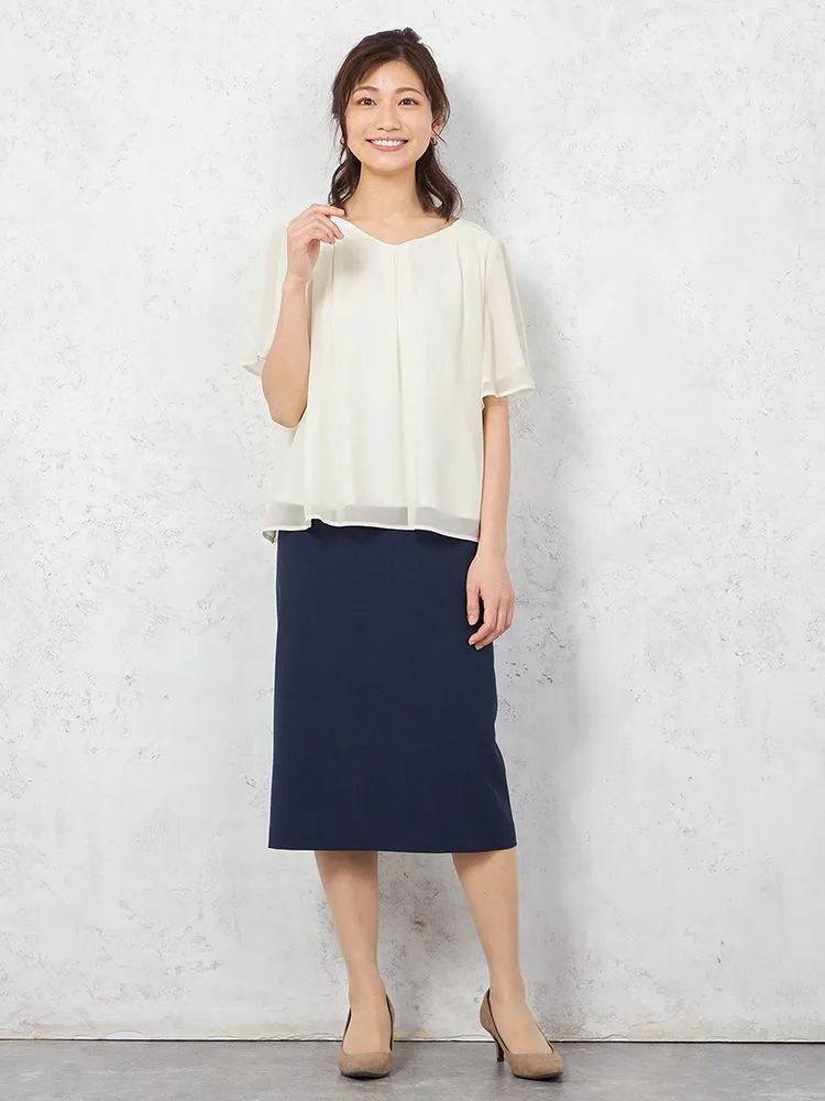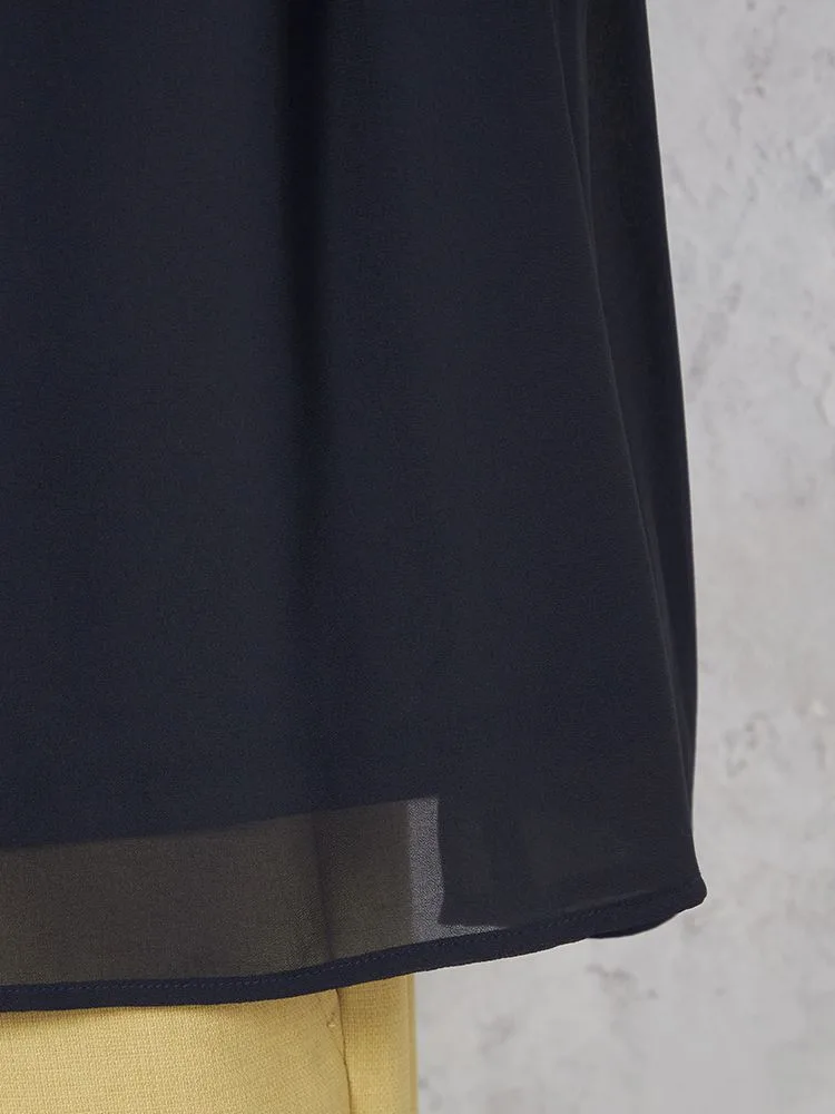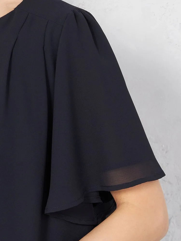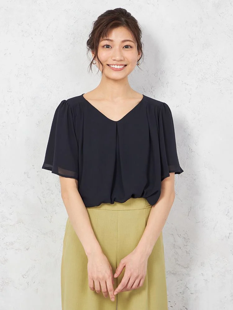 シアーなシフォン素材を使った、軽やかな着心地の半袖プルオーバーブラウスです。