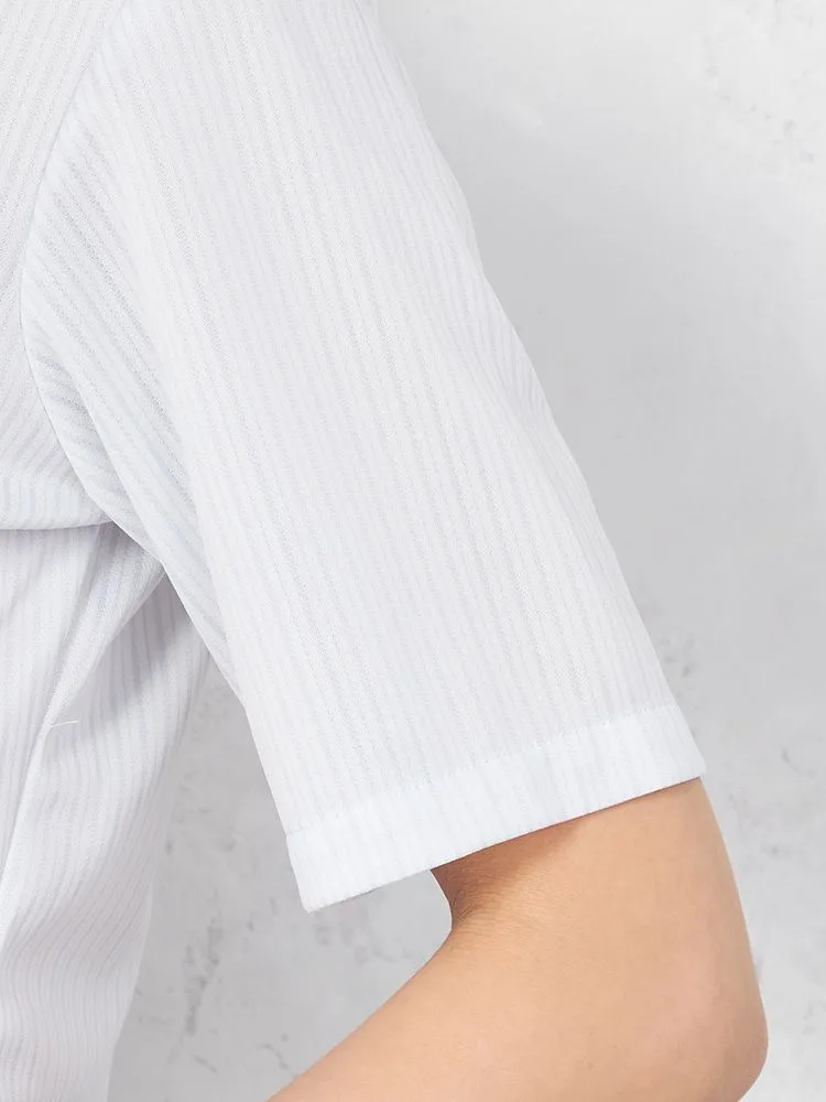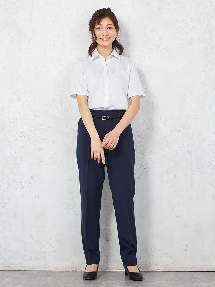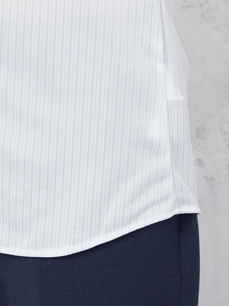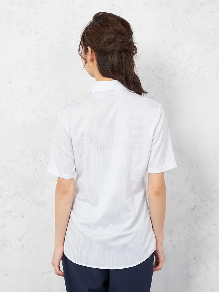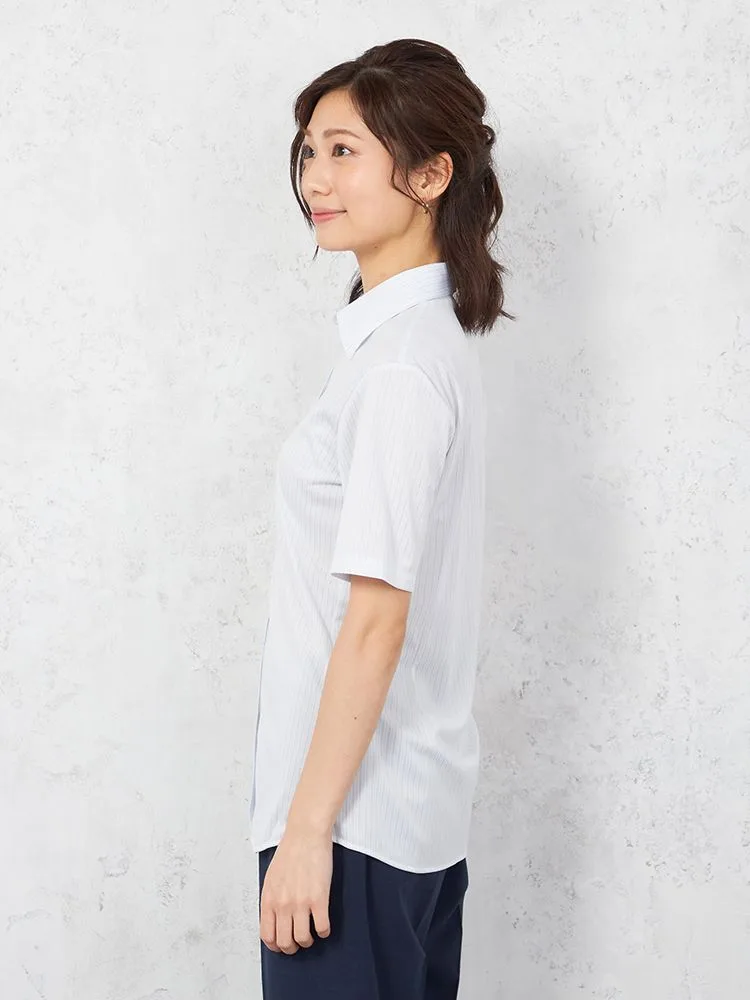 • 【完全ノーアイロン】i-shirtバイオセンサー 半袖 ブラウス スキッパー サックス シャドウストライプ アイシャツ 春夏【レディース】 1307810707
