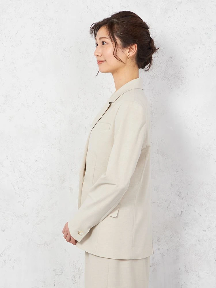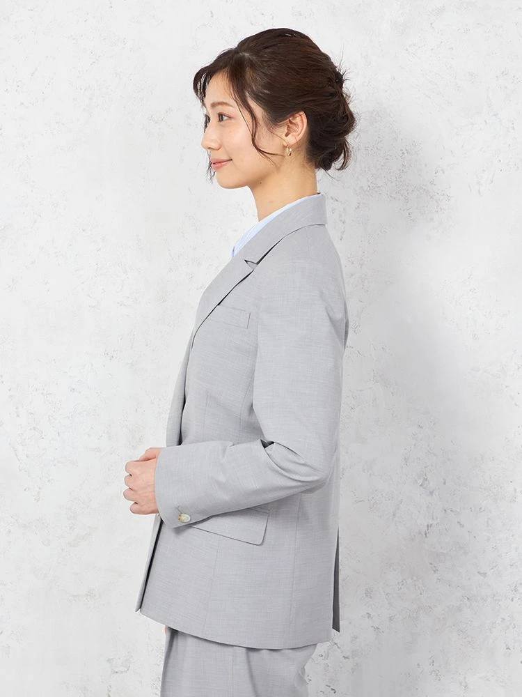 切り込みが1本のセンターベントデザインです。細身でスッキリとしたシルエットが特徴で、快適な着心地を提供します