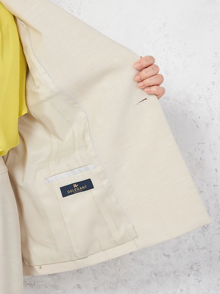 【UVカット&ウォッシャブル】デレガント ダブルジャケット ストレッチ 無地 SOFFICE 【レディース】(ベージュ)