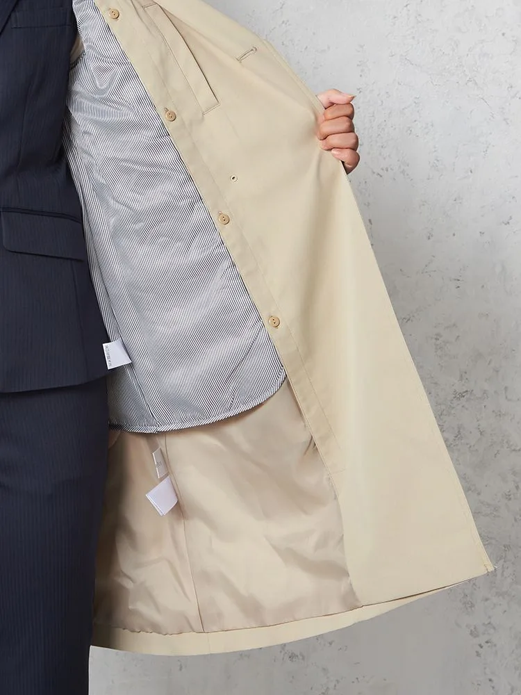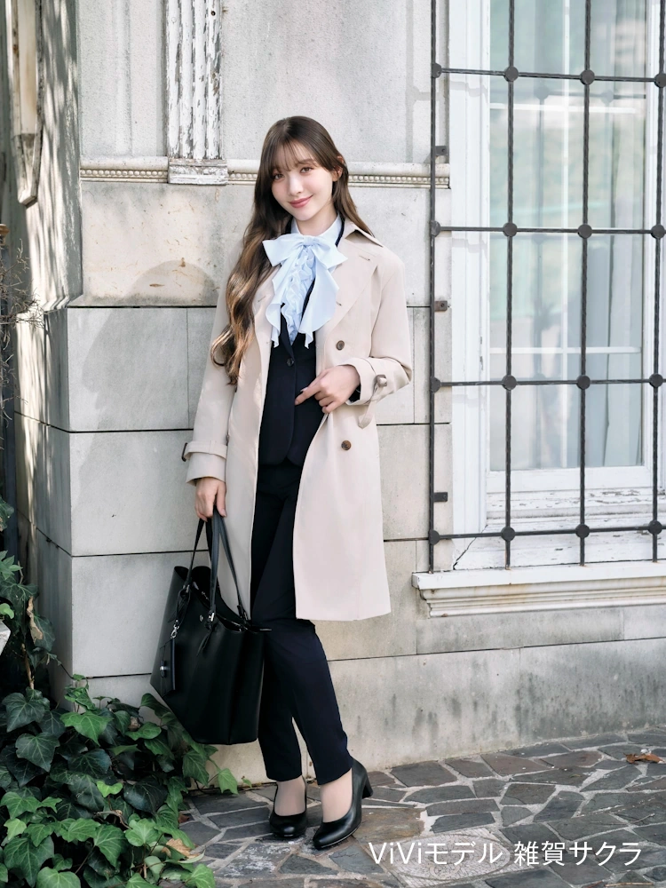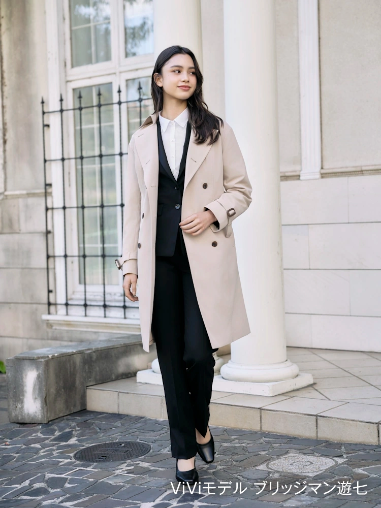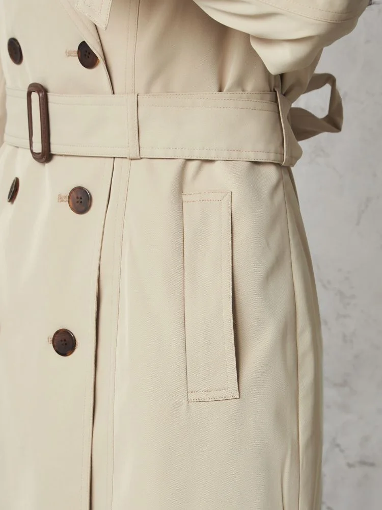 天気を気にせずに羽織れる撥水加工のトレンチコート。