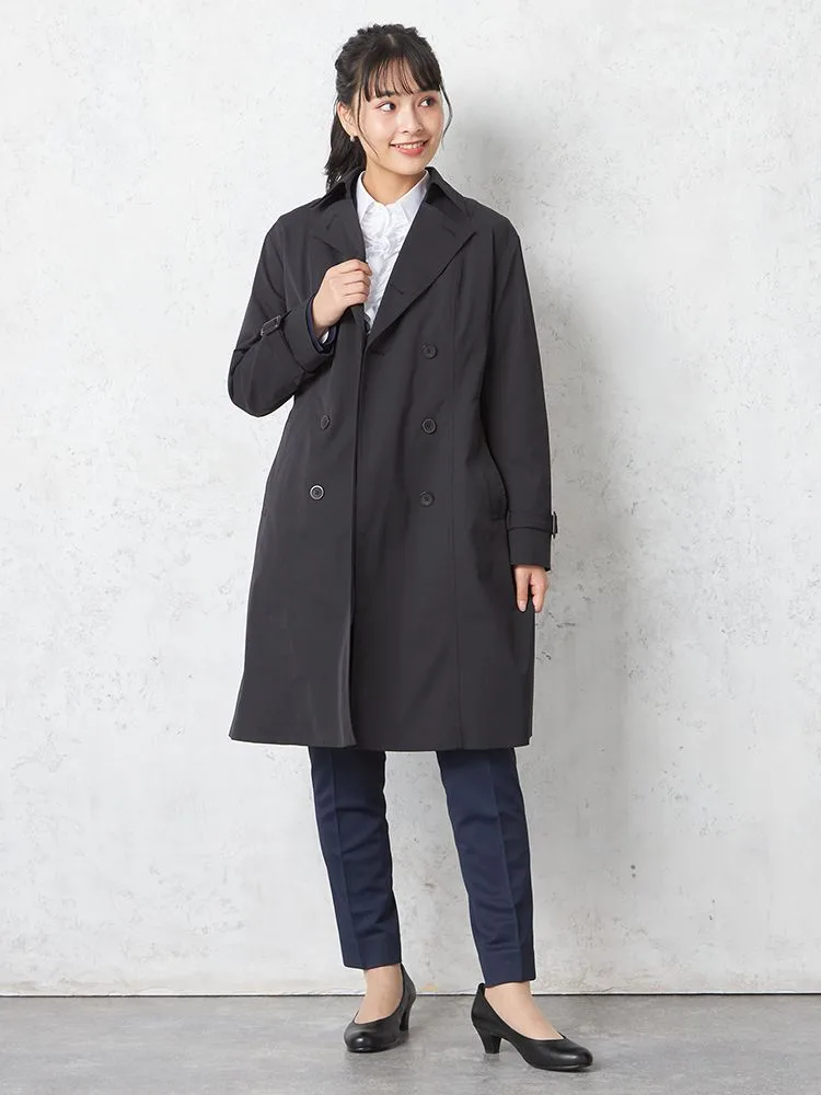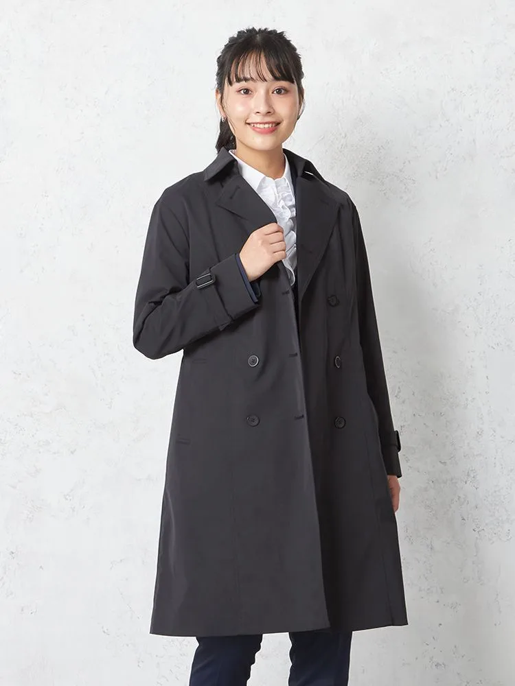 【撥水】トレンチコート 取り外しライナー付き 防花粉 防シワ 無地 SOFFICE 通年【レディース】(ブラック)