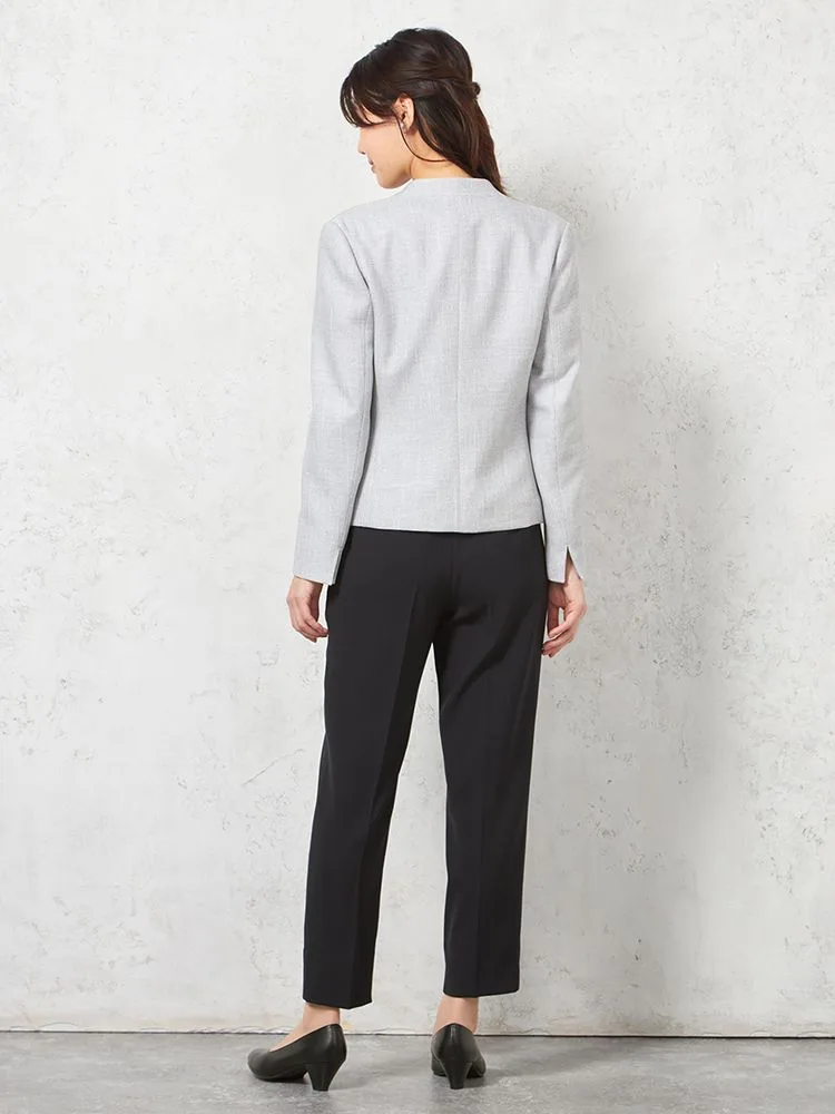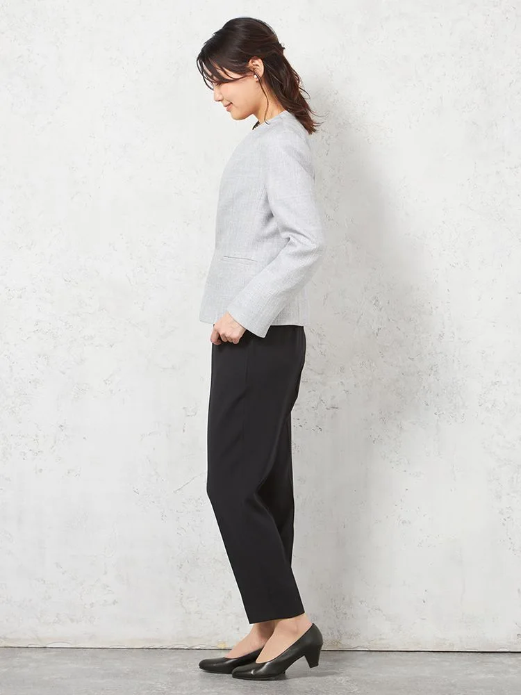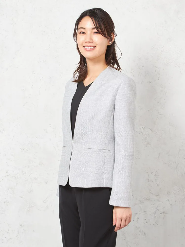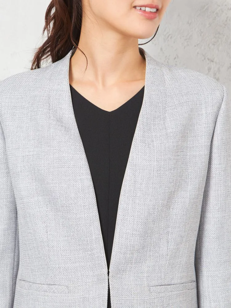 メランジ調ノーカラージャケットはスマートなシルエットにして、スタイルアップを可能に。