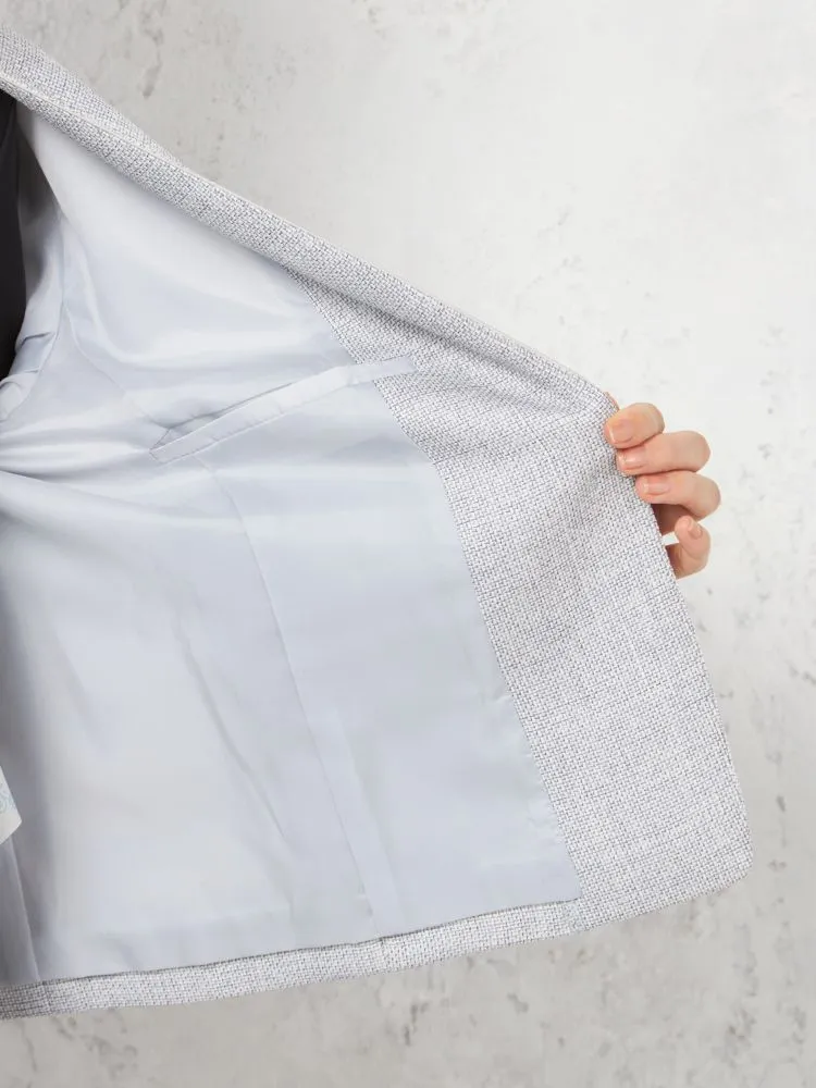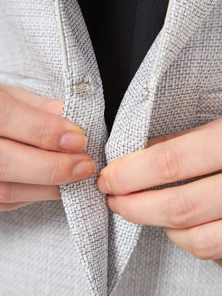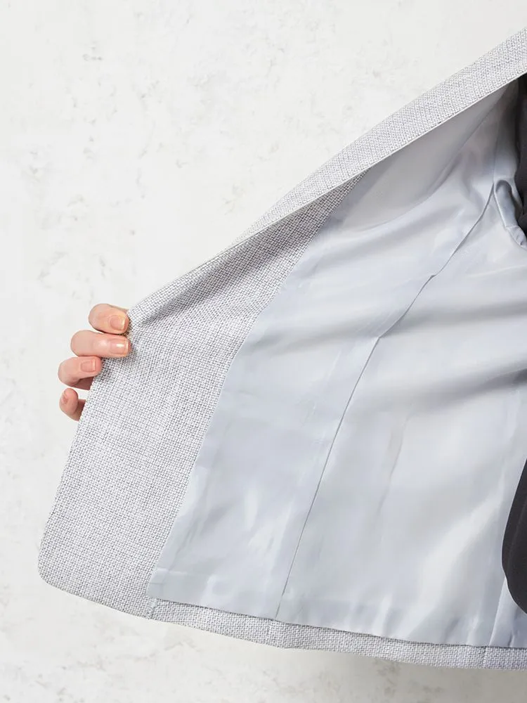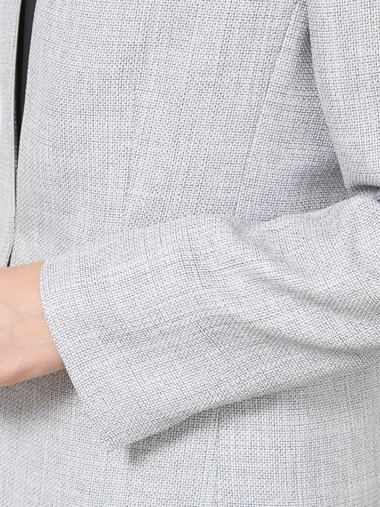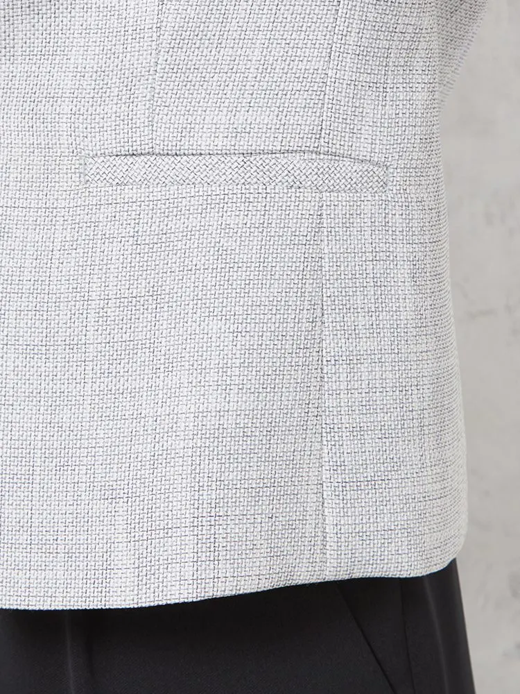 メランジ調ノーカラージャケットはスマートなシルエットにして、スタイルアップを可能に。