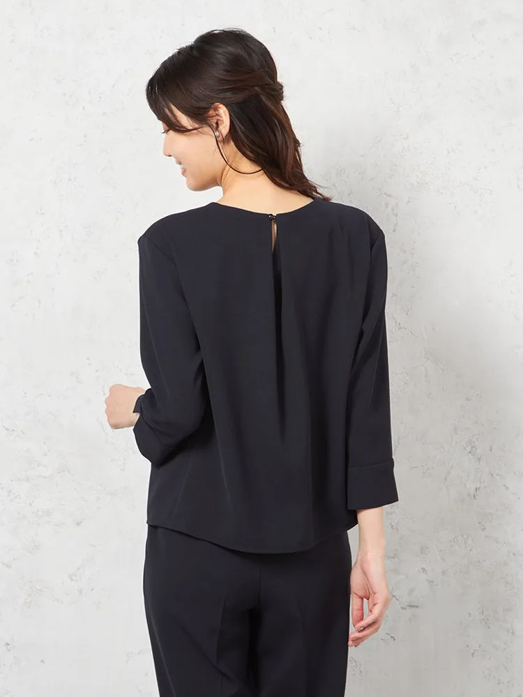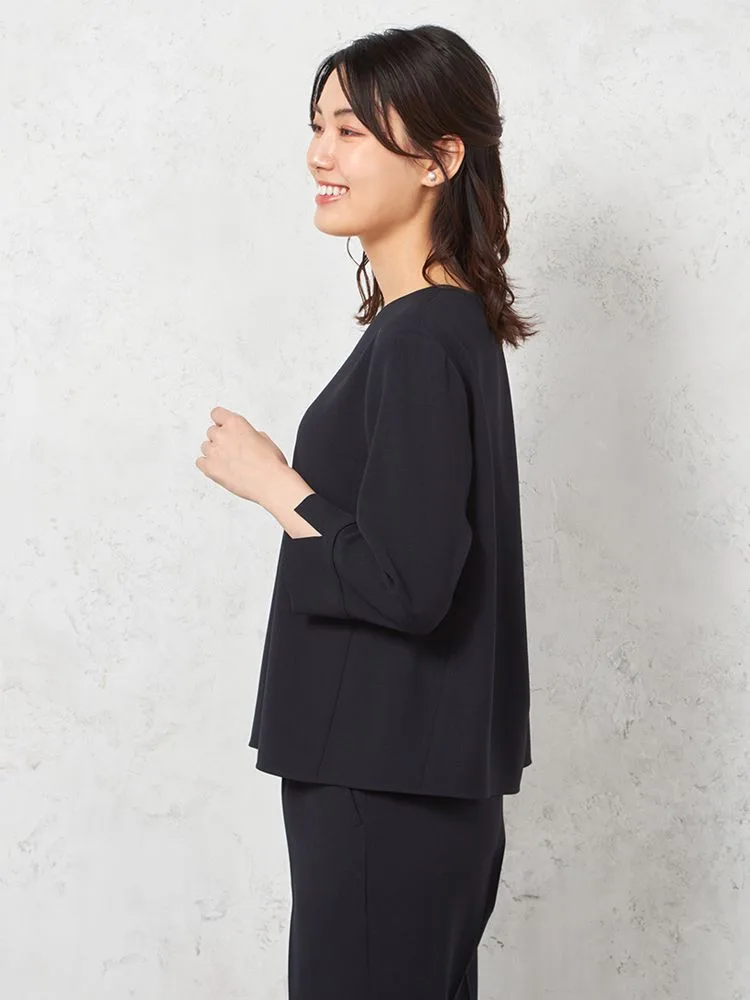 【ウォッシャブル】フォーマルジャケット/トップス/パンツ3点セットストレッチ黒無地通年礼服【レディース】
