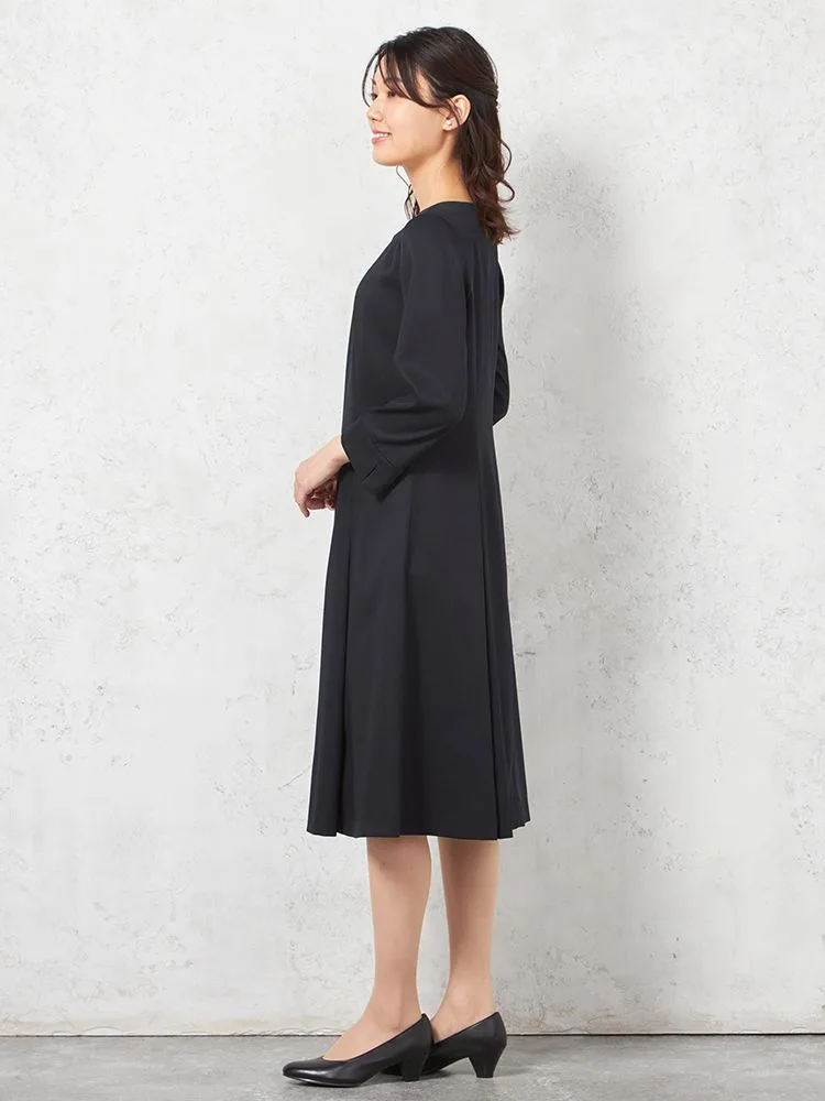 ワンピースはウエストをやや絞り、メリハリのあるシルエットに。