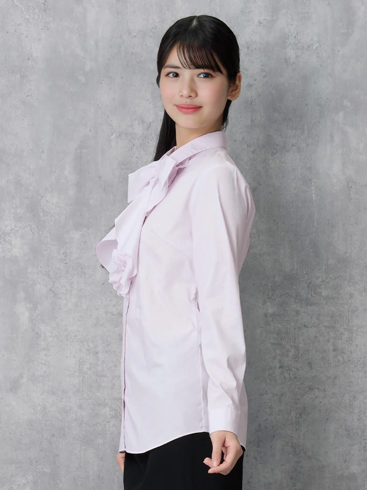 取り外し可能なフリル&リボン付きで、シーンや気分で4 通りの着こなしができる万能ブラウス。