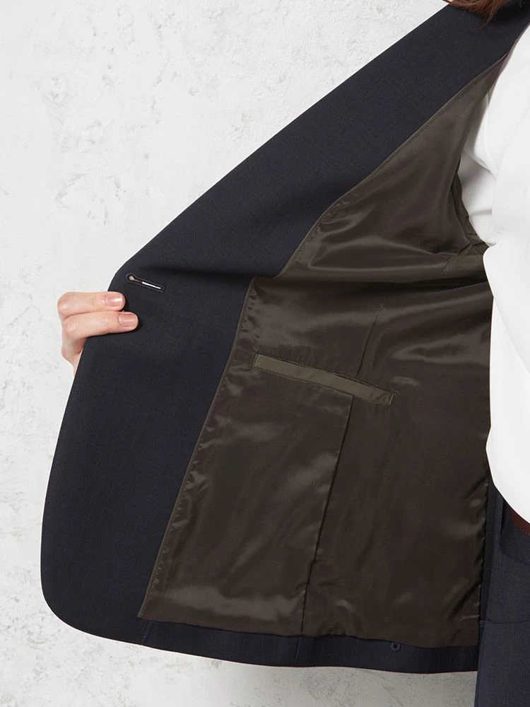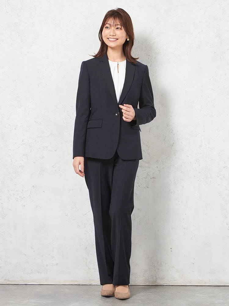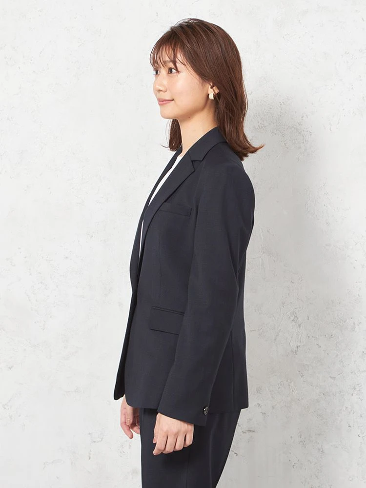 1つボタンのデザインで、シンプルかつスタイリッシュな印象を与えます。洗練されたシルエットが特徴です。