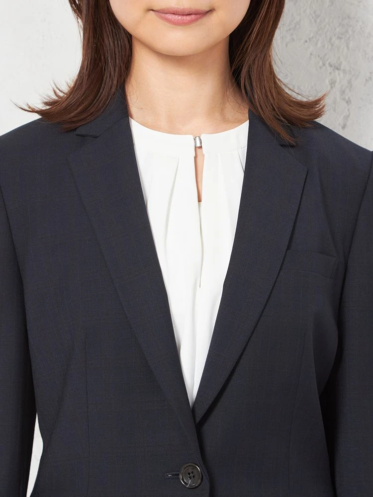 【働ラク肩ラクスーツ】ジャケット 1つボタン ウォッシャブル ストレッチ ネイビーチェック S&M WHITE 秋冬【レディース】