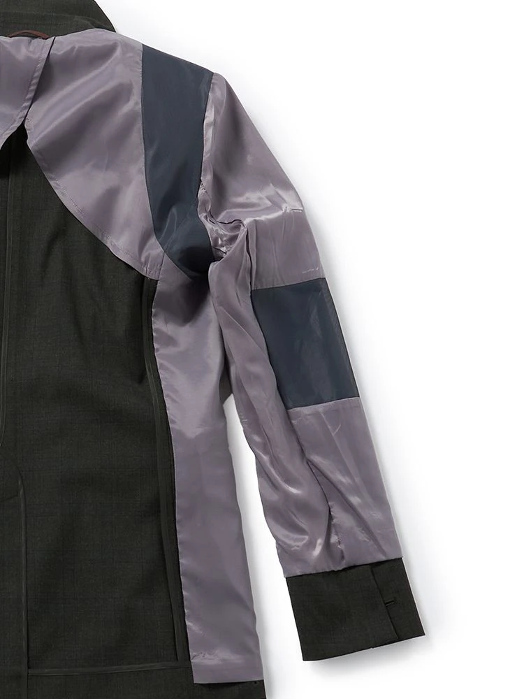 動作時に負担のかかりやすい肩や肘周りに伸縮性のあるトリコット裏地を採用。