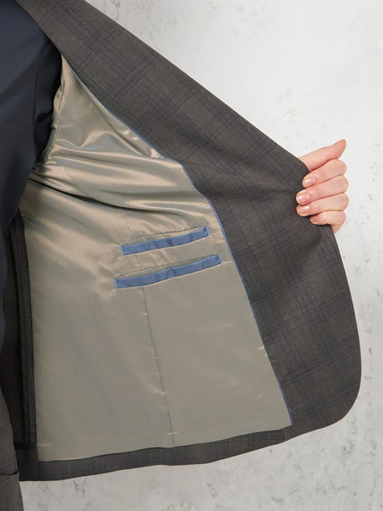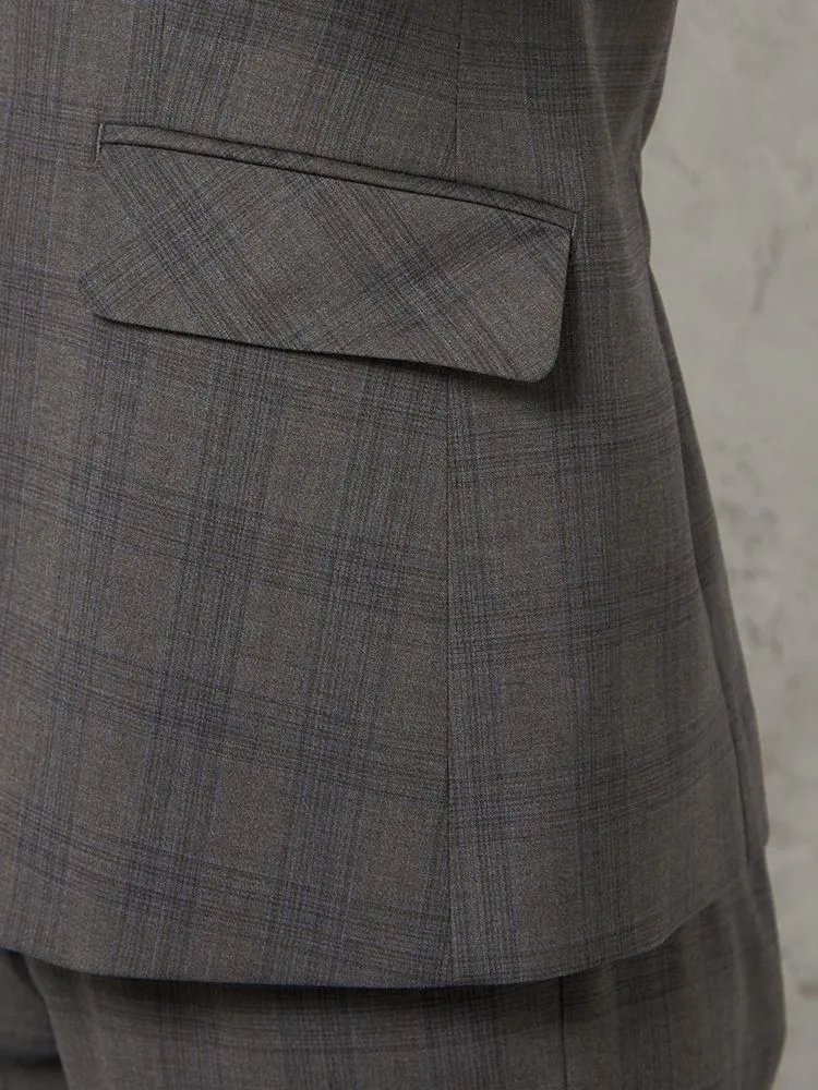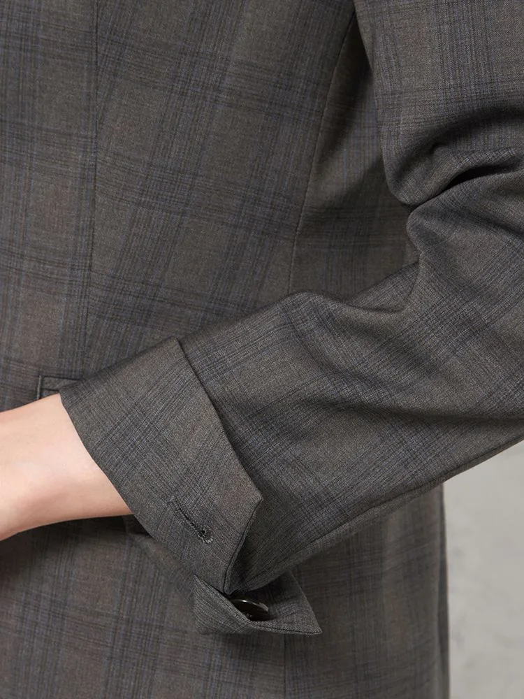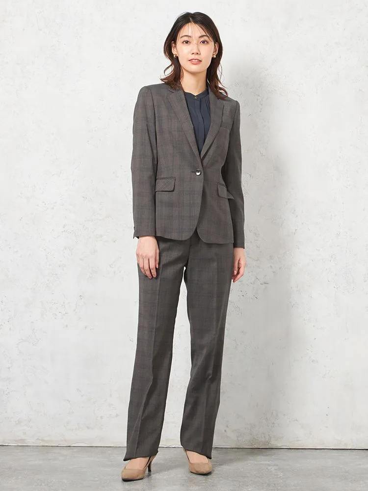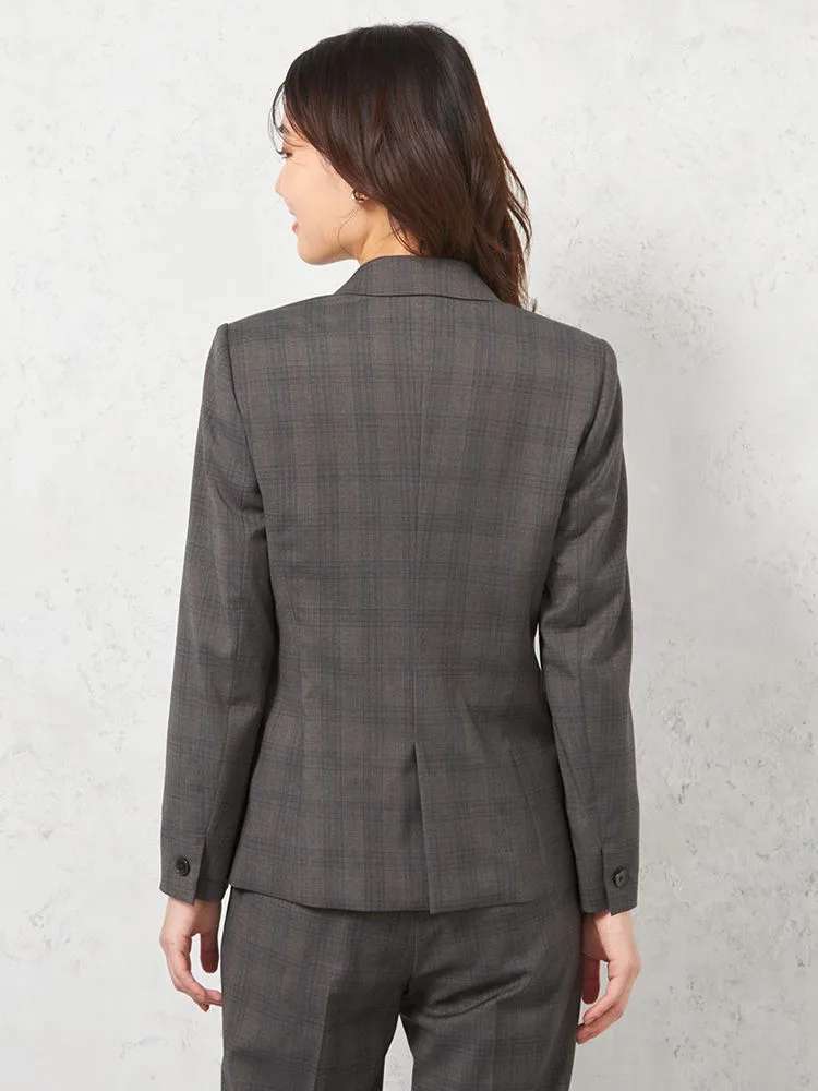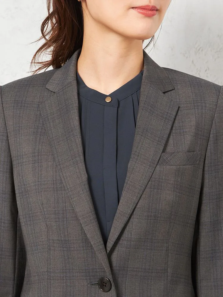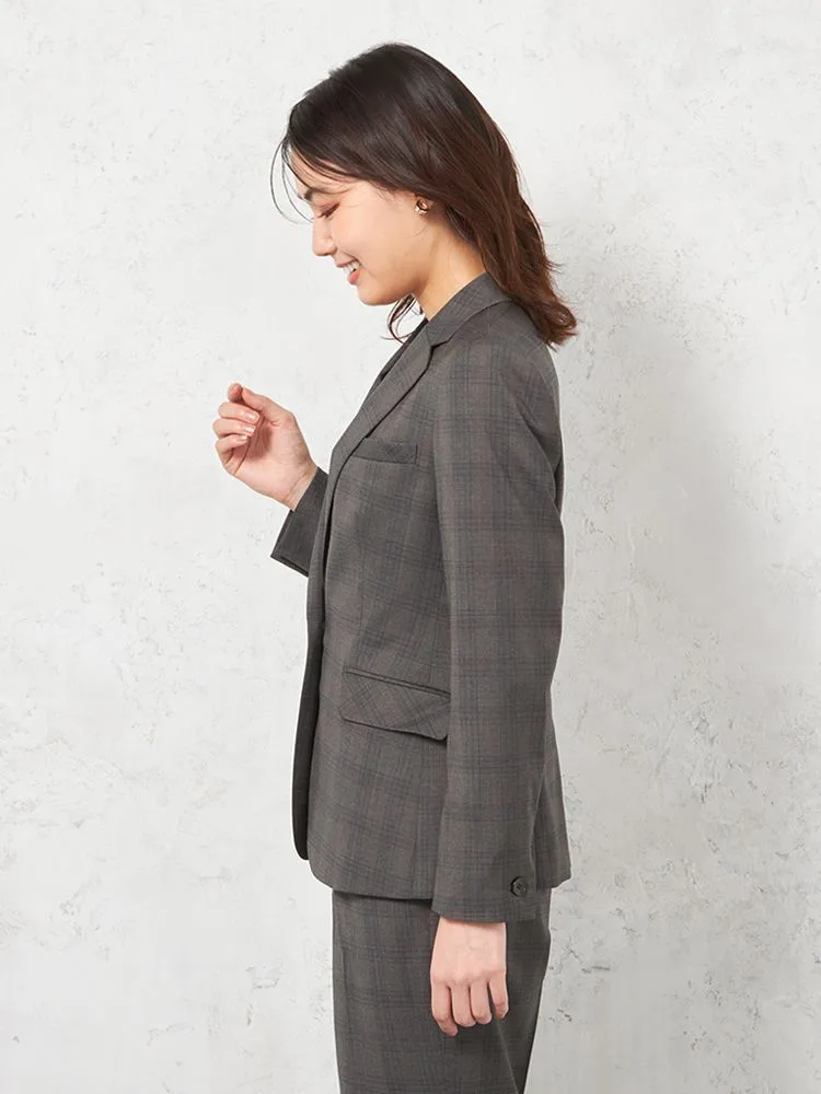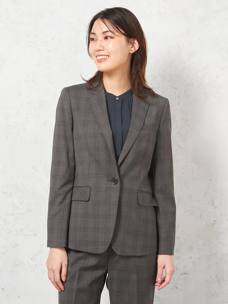 大人らしくエレガントな雰囲気があるグレーチェックのテーラードジャケット。