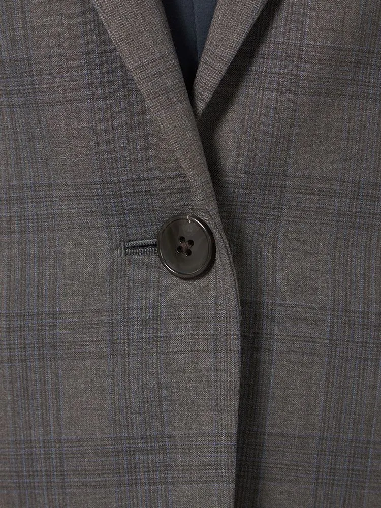 1つボタンのデザインで、シンプルかつスタイリッシュな印象を与えます。洗練されたシルエットが特徴です。