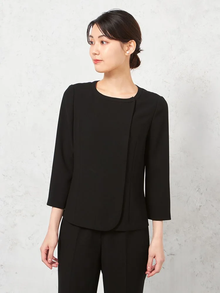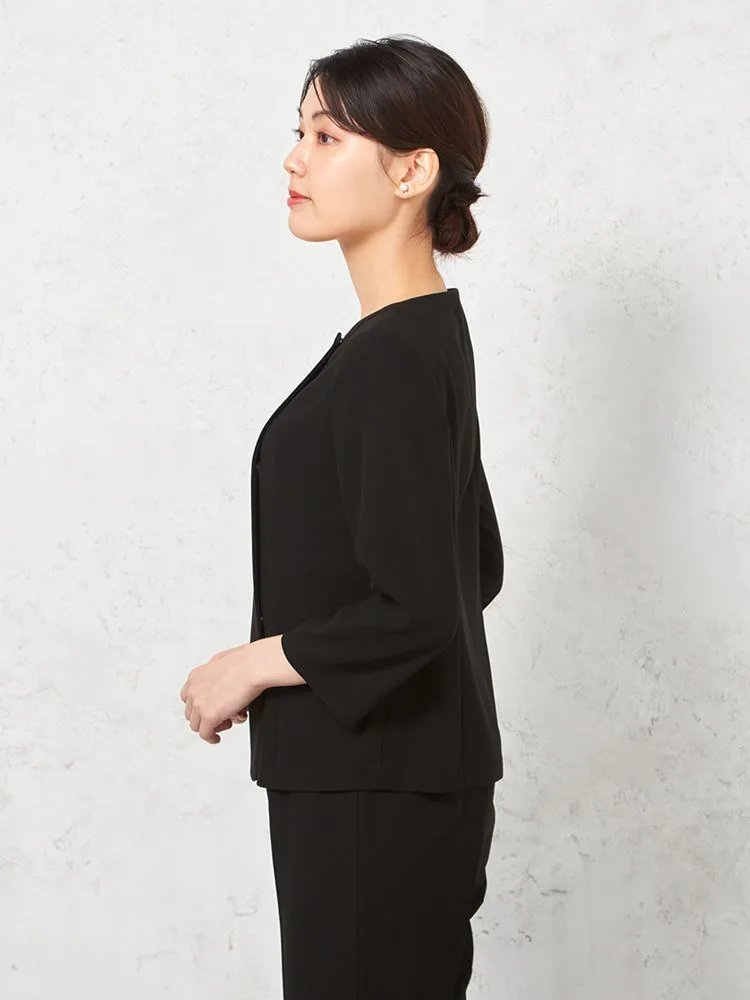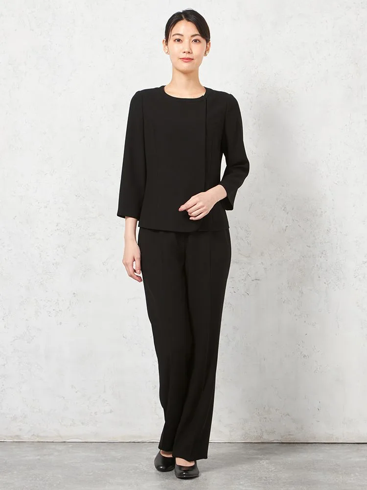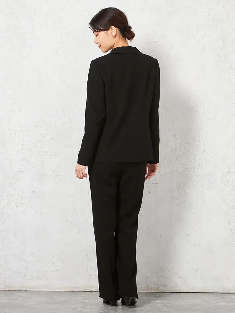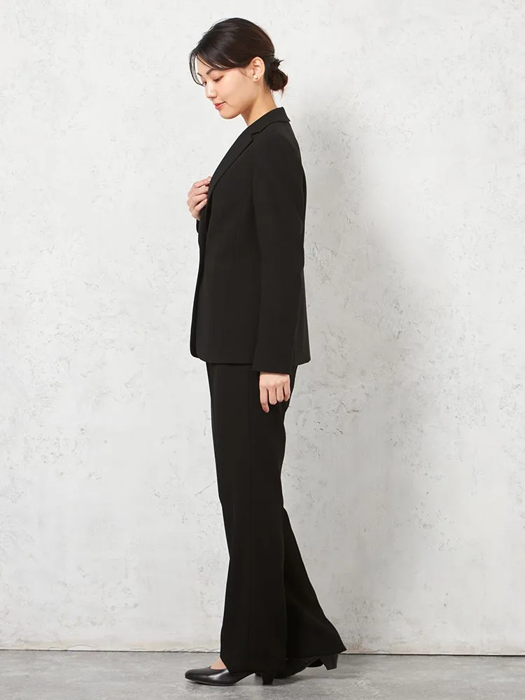 【ウォッシャブル】フォーマルジャケット/トップス/パンツ3点セットストレッチ黒無地通年礼服【レディース】