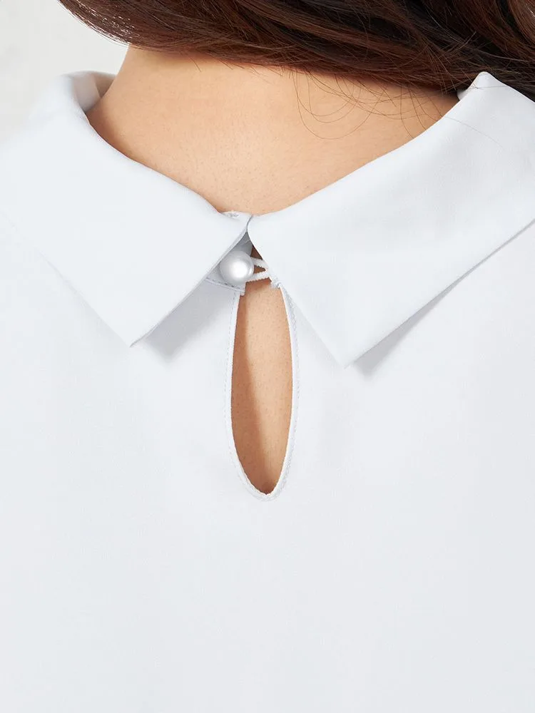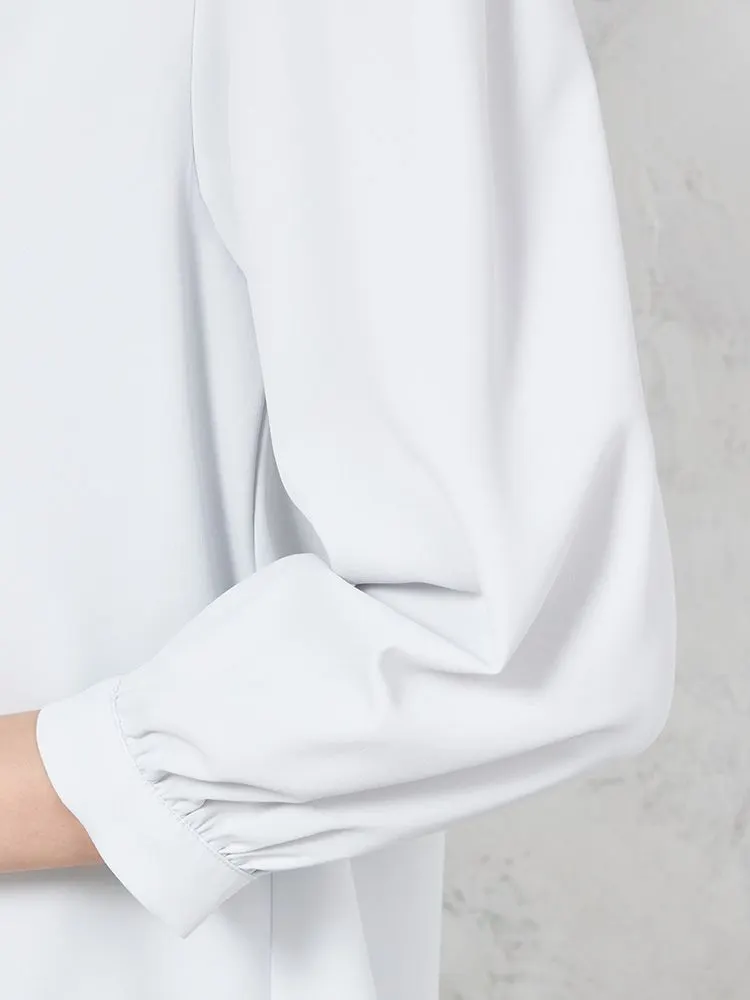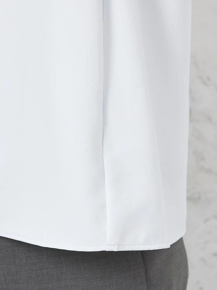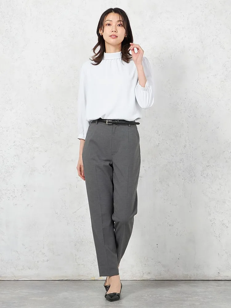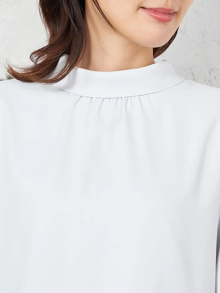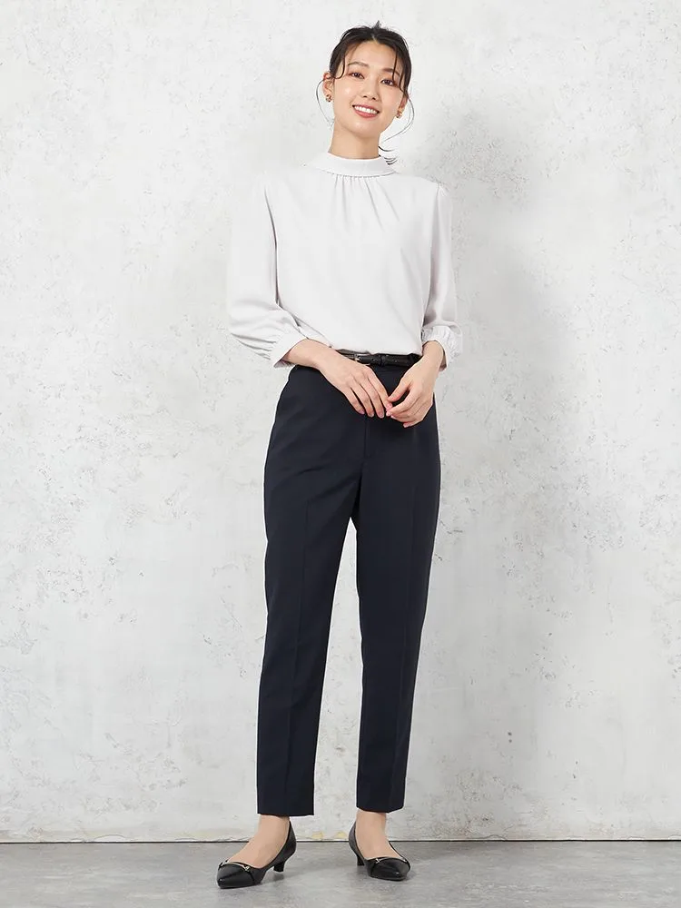首元をロールカラー仕立てにして、凛とした雰囲気に仕上げた7分袖ブラウス。