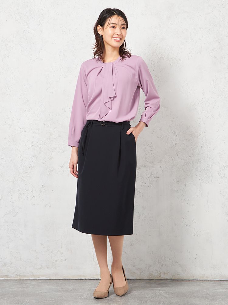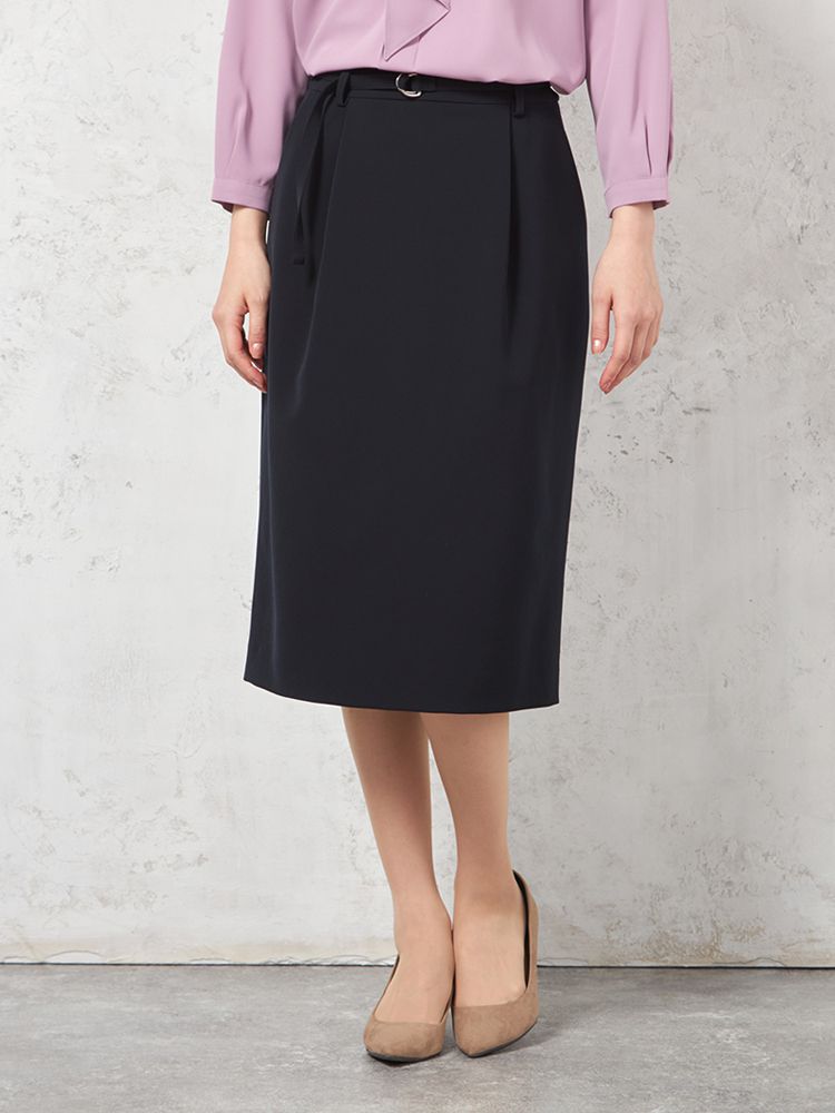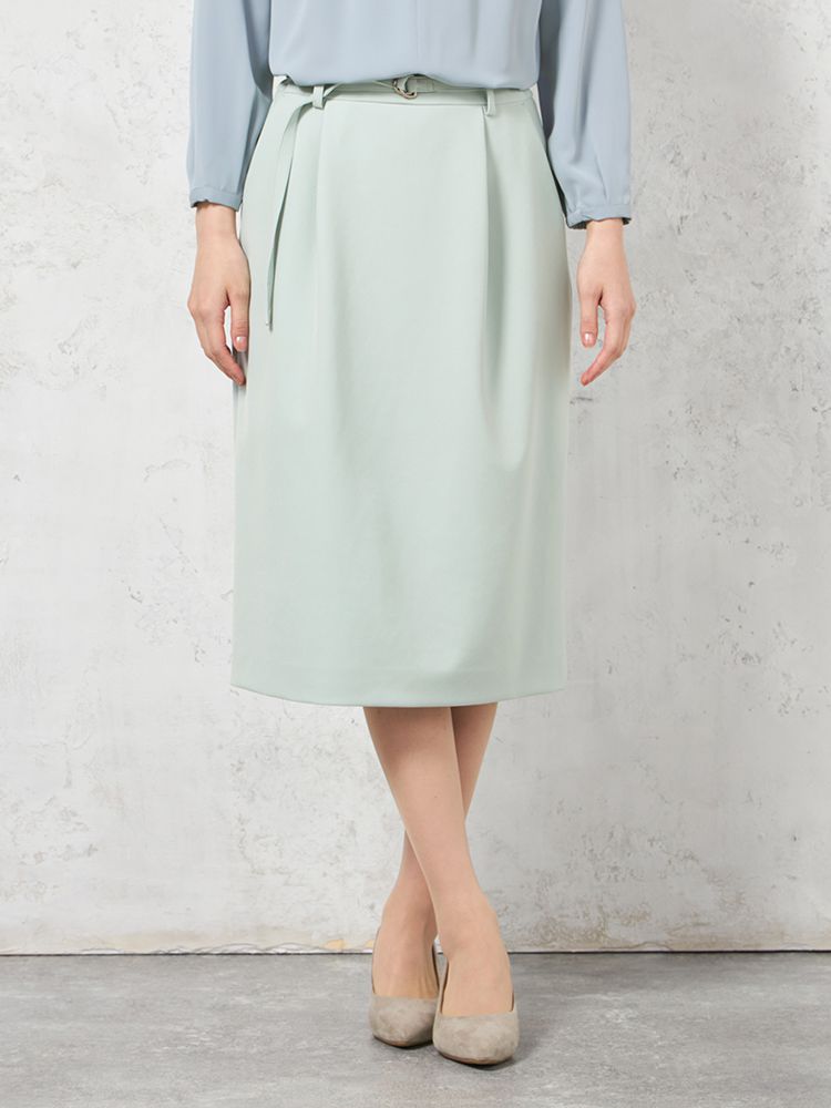 【ウォッシャブル】タイトスカート ベルト付き ストレッチ【ビジネス/セレモニー】無地 SOFFICE 通年【レディース】(L.グリーン)