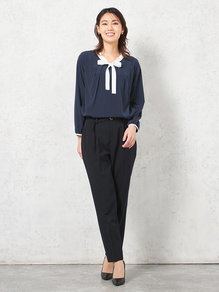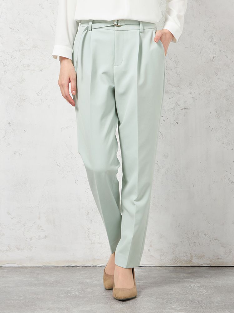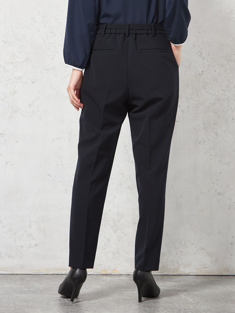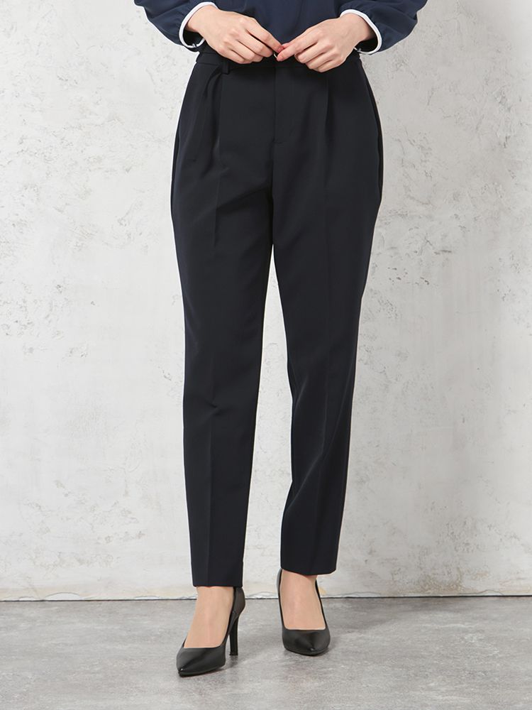 【ウォッシャブル】テーパードパンツ ベルト付き ストレッチ【ビジネス/セレモニー】無地 SOFFICE 通年【レディース】(ネイビー)