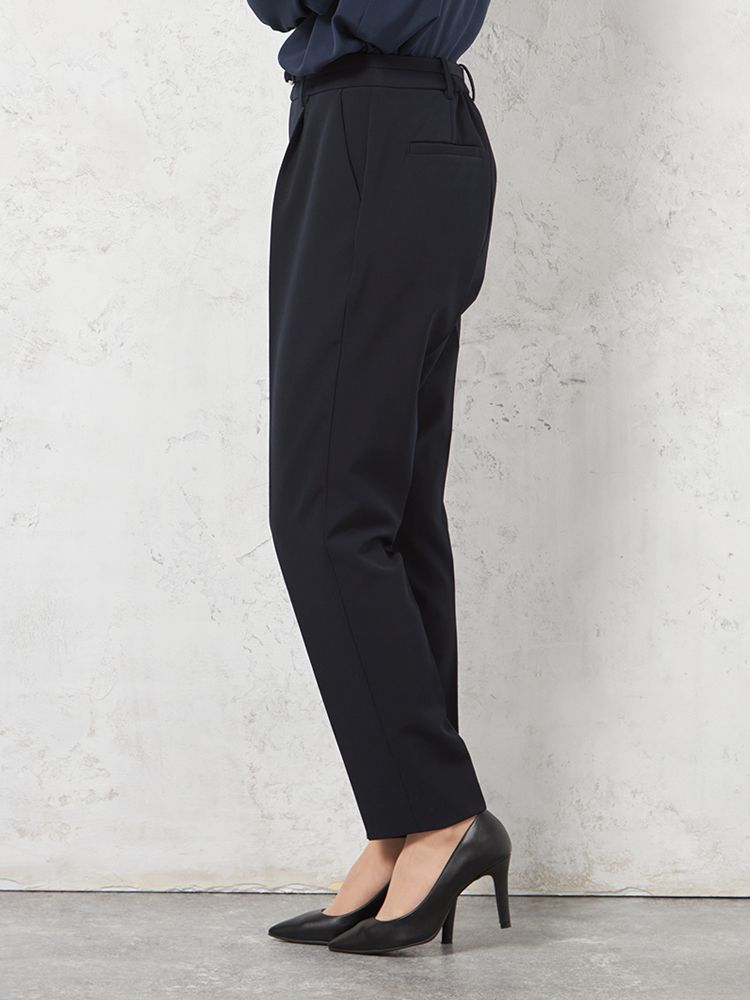すっきりとした美脚を叶えるタック入りテーパードパンツ。