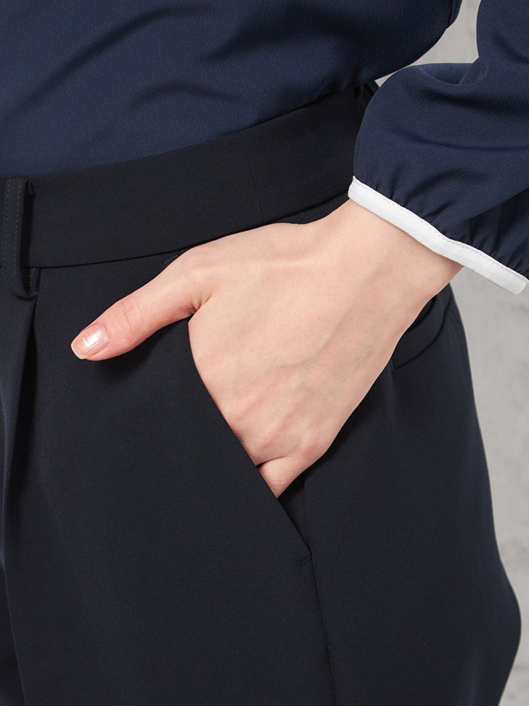 【UVカット&ウォッシャブル】デレガントテーパードパンツタック入りストレッチ無地SOFFICE【レディース】