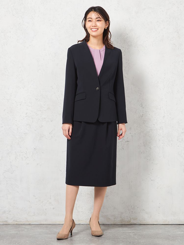 【即納】【パンツスーツ上下セット】ハイストレッチカラーレスジャケットパンツセット【WEB限定】秋冬【レディース】