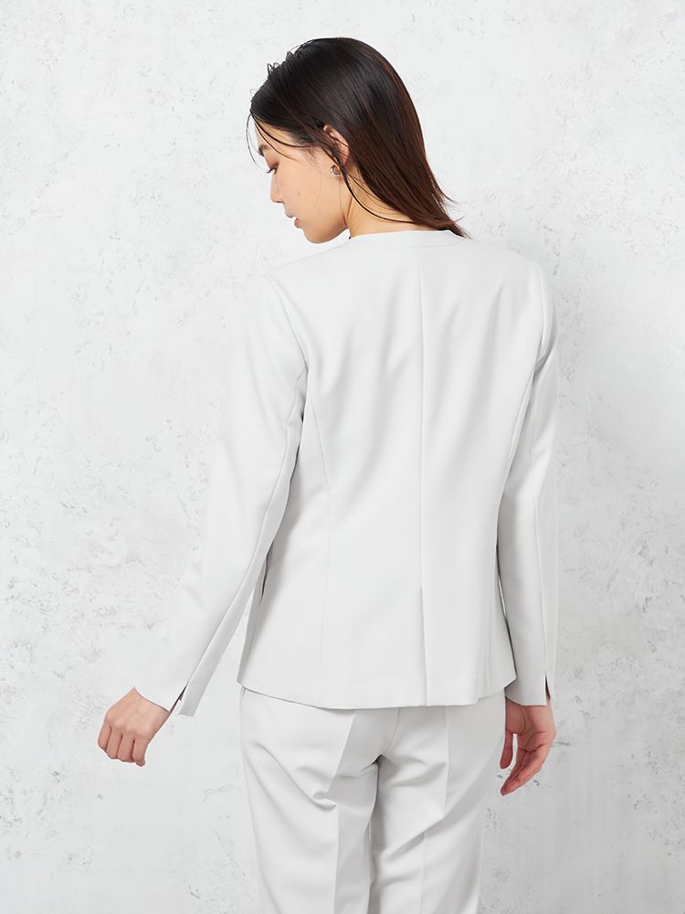 ハンサムなスタイリングを演出してくれる、クリーンな表情のノーカラージャケット。