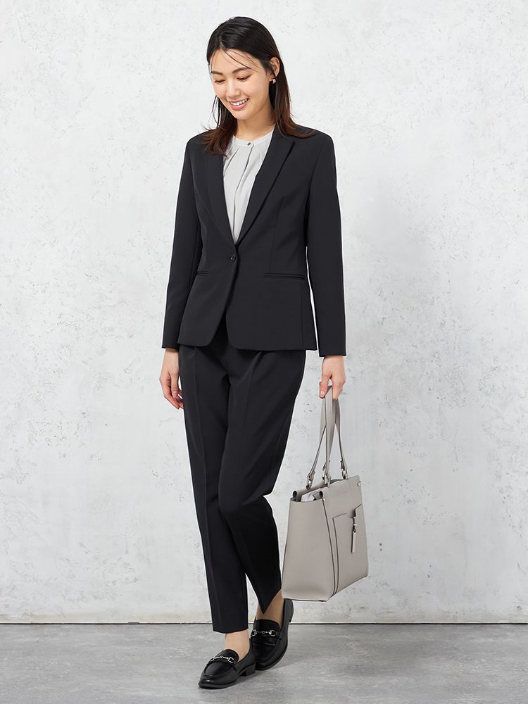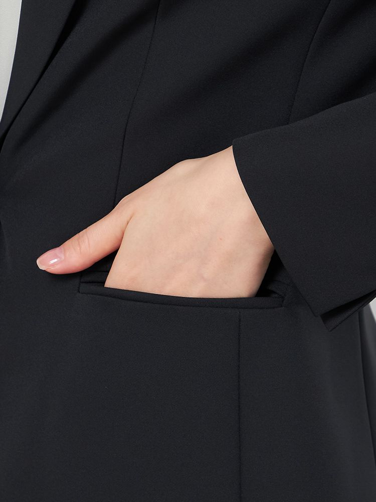 1つボタンのデザインで、シンプルかつスタイリッシュな印象を与えます。洗練されたシルエットが特徴です。