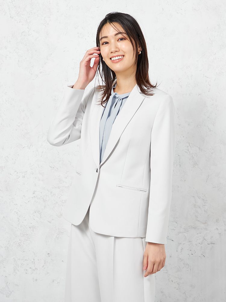 【INDIVI】ウォッシャブル テーラードジャケット 1つボタン ダブルクロス 無地 通年【レディース】(L.グレー)