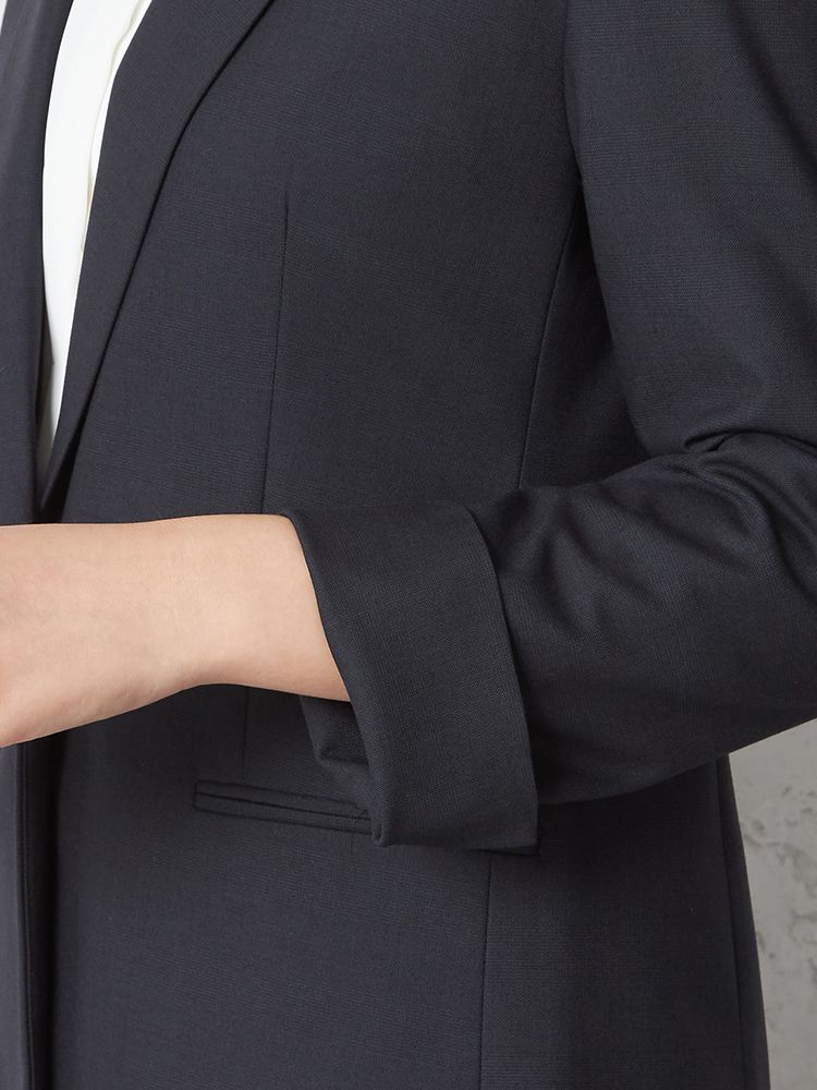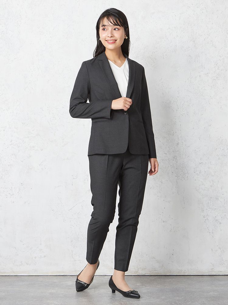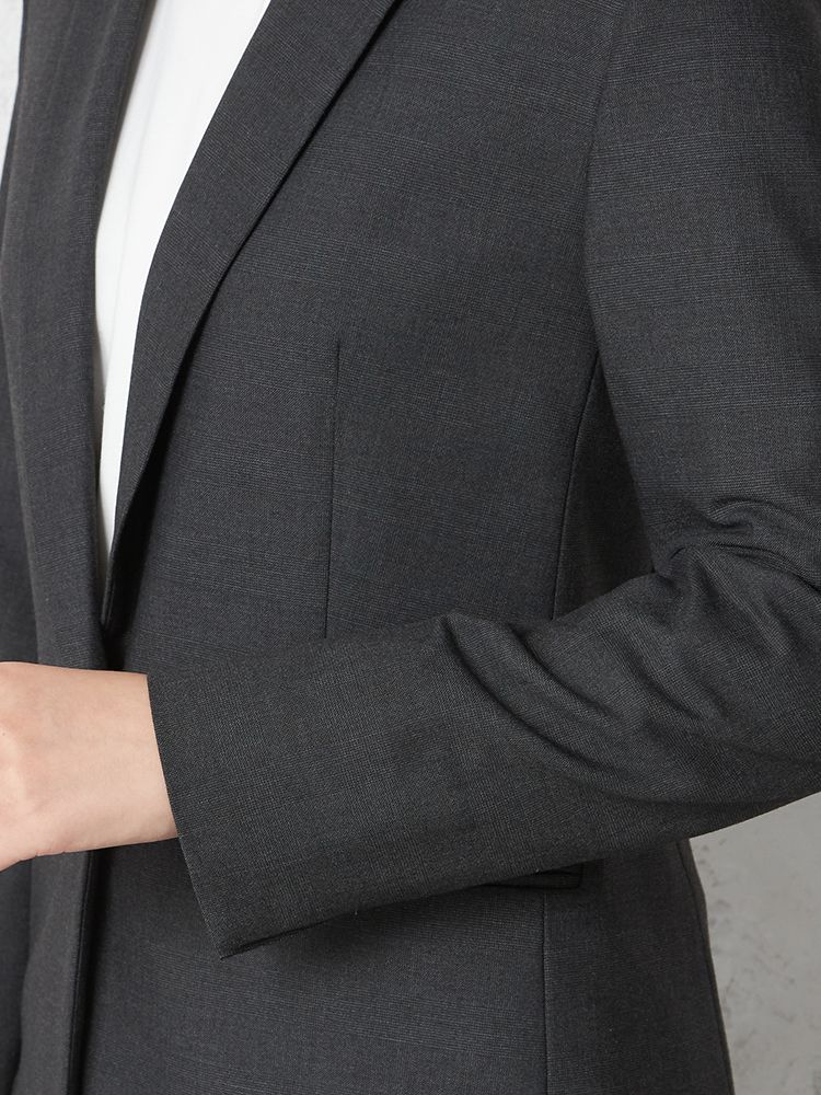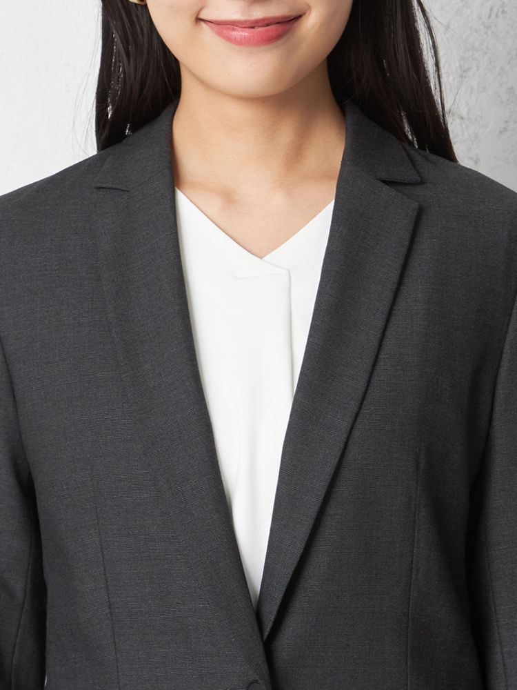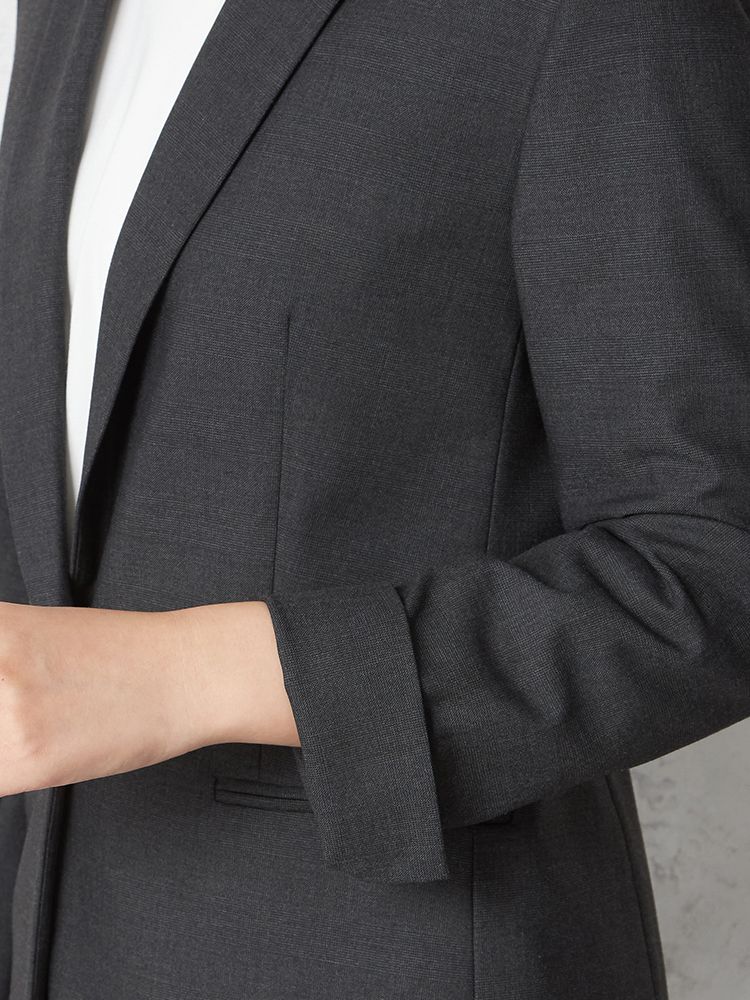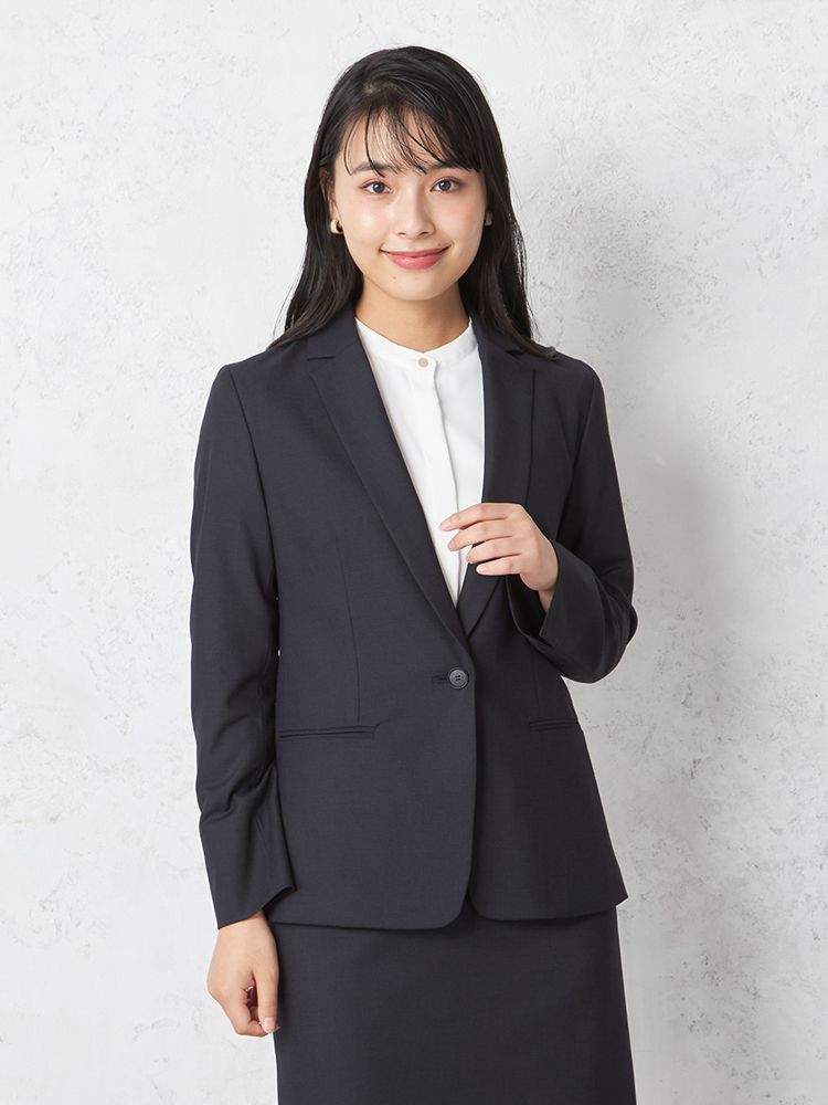1つボタンのデザインで、シンプルかつスタイリッシュな印象を与えます。洗練されたシルエットが特徴です。