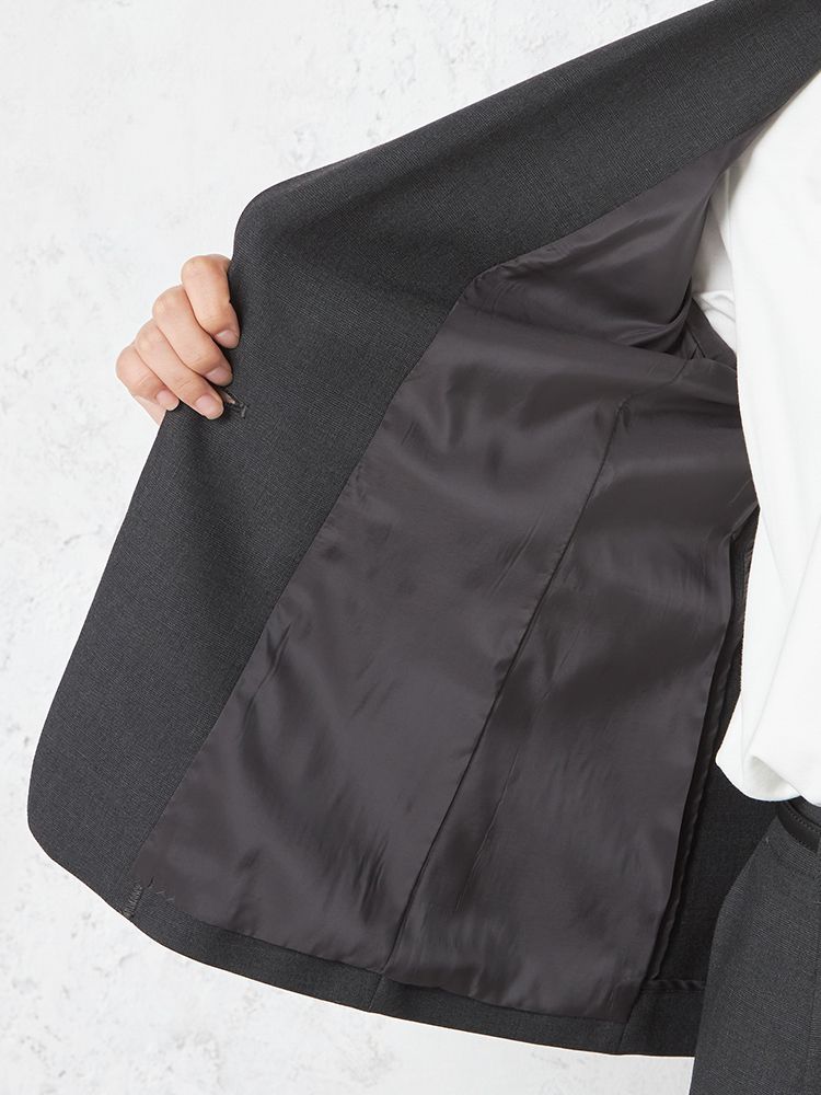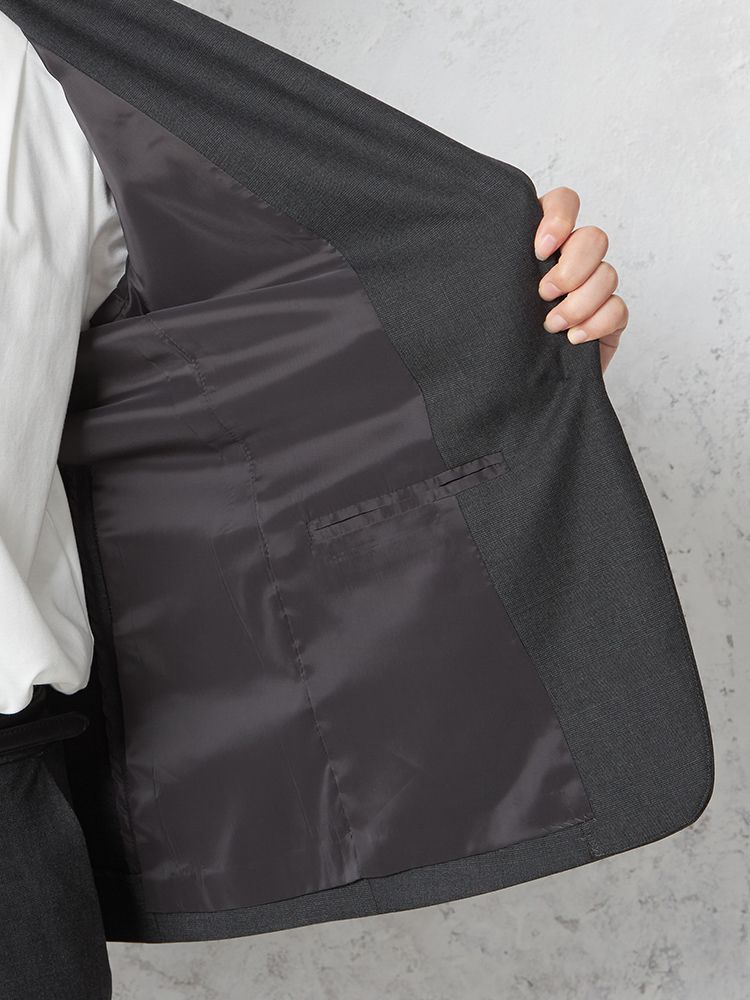 切り込みが1本のセンターベントデザインです。細身でスッキリとしたシルエットが特徴で、快適な着心地を提供します
