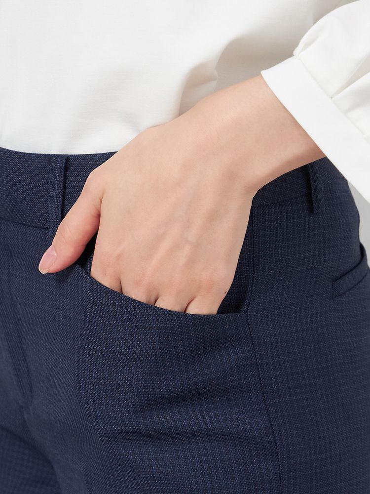 細やかなハウンドトゥース柄で、トップスを選ばず取り入れやすいアイテムとなっています。
