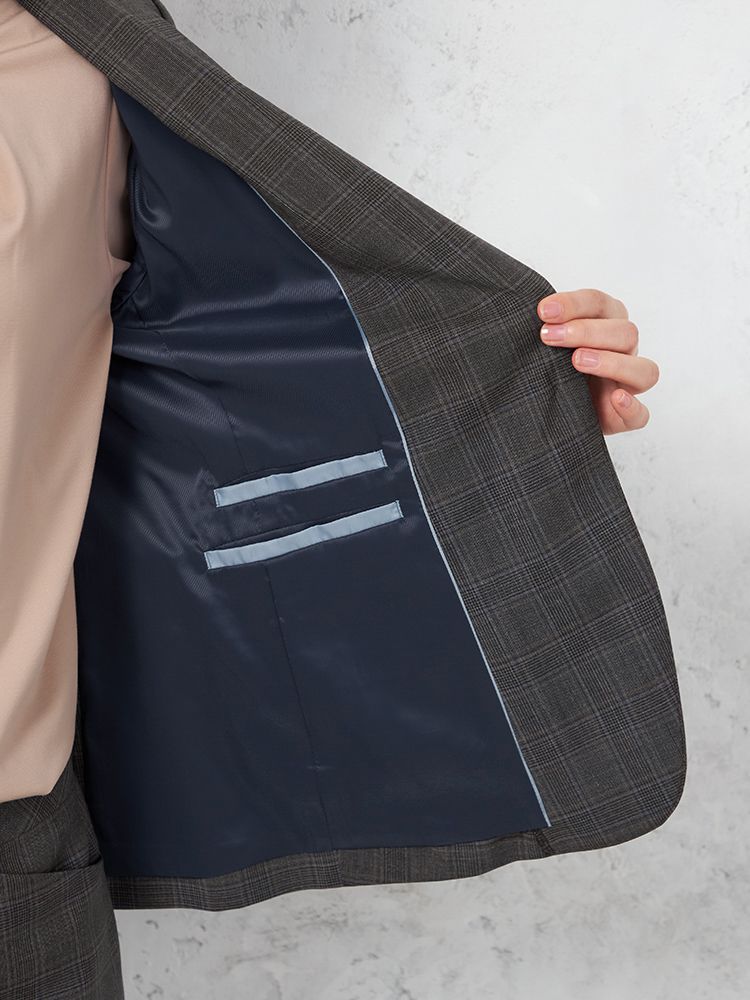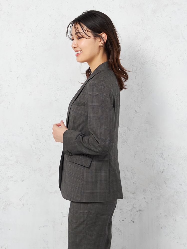シックで大人な、グレンチェック柄のテーラードジャケットです。